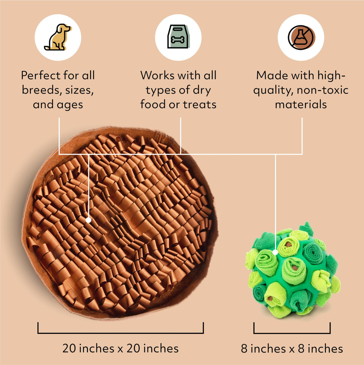Looking For Added Enrichment During Mealtimes? The Stimulating Feeder Mat & Forager Ball Bundle Is An Easy Way To Make Mealtimes More Engaging And Keep Boredom (And Destructive Behaviors) At Bay! Designed To Engage Your Dogs Natural Foraging Instincts, The Mental Workout Of Sniffing And Foraging Can Tire Out The Most Hyperactive Of Pups - In Fact, 15 Minutes Can Burn As Much Energy As One Hour Of Walking!