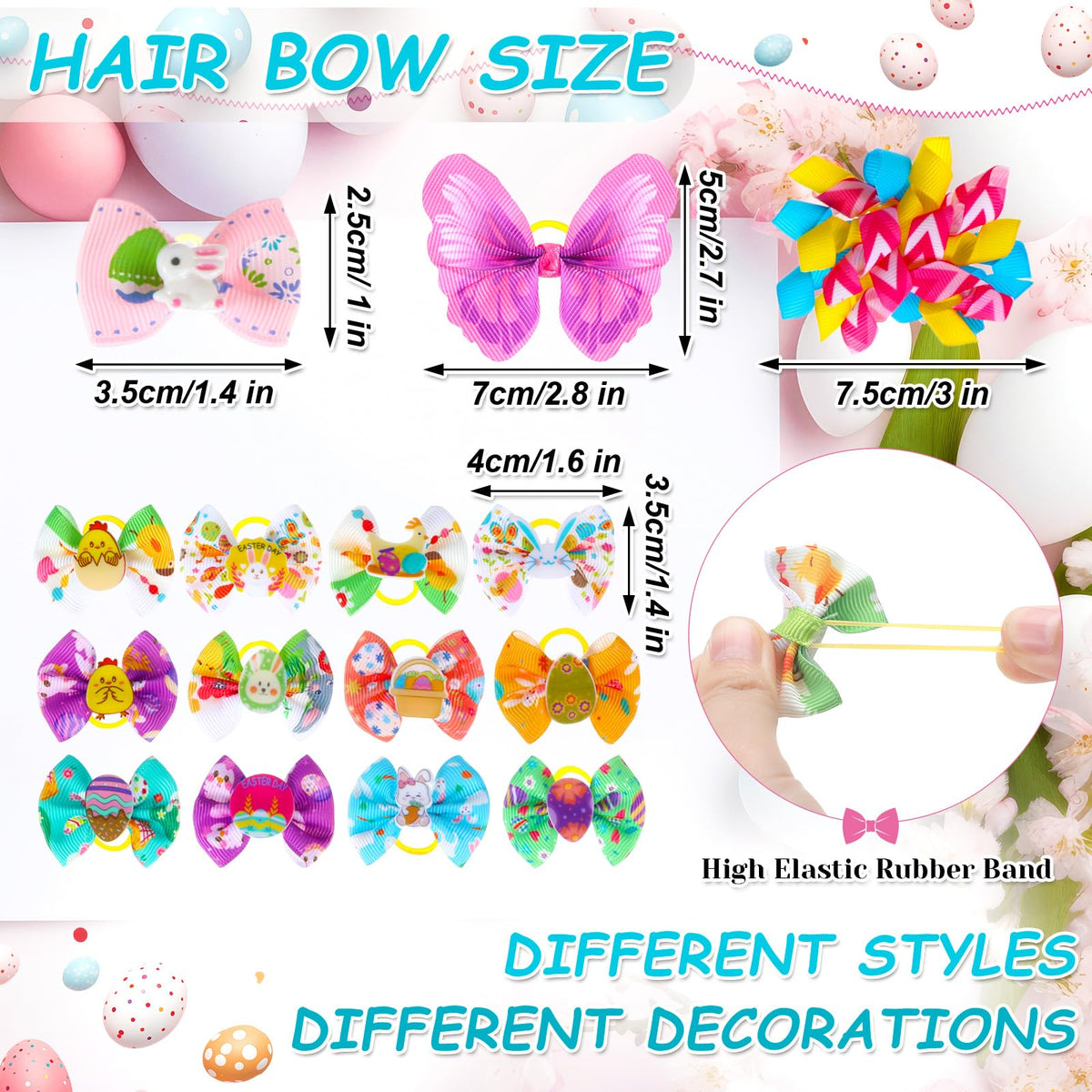 Reginary 70 Pcs Easter Dog Bow Ties Collar Set Adjustable Grooming Hair Bows Rabbit Eggs Butterfly Rhinestone Pattern Neckties F