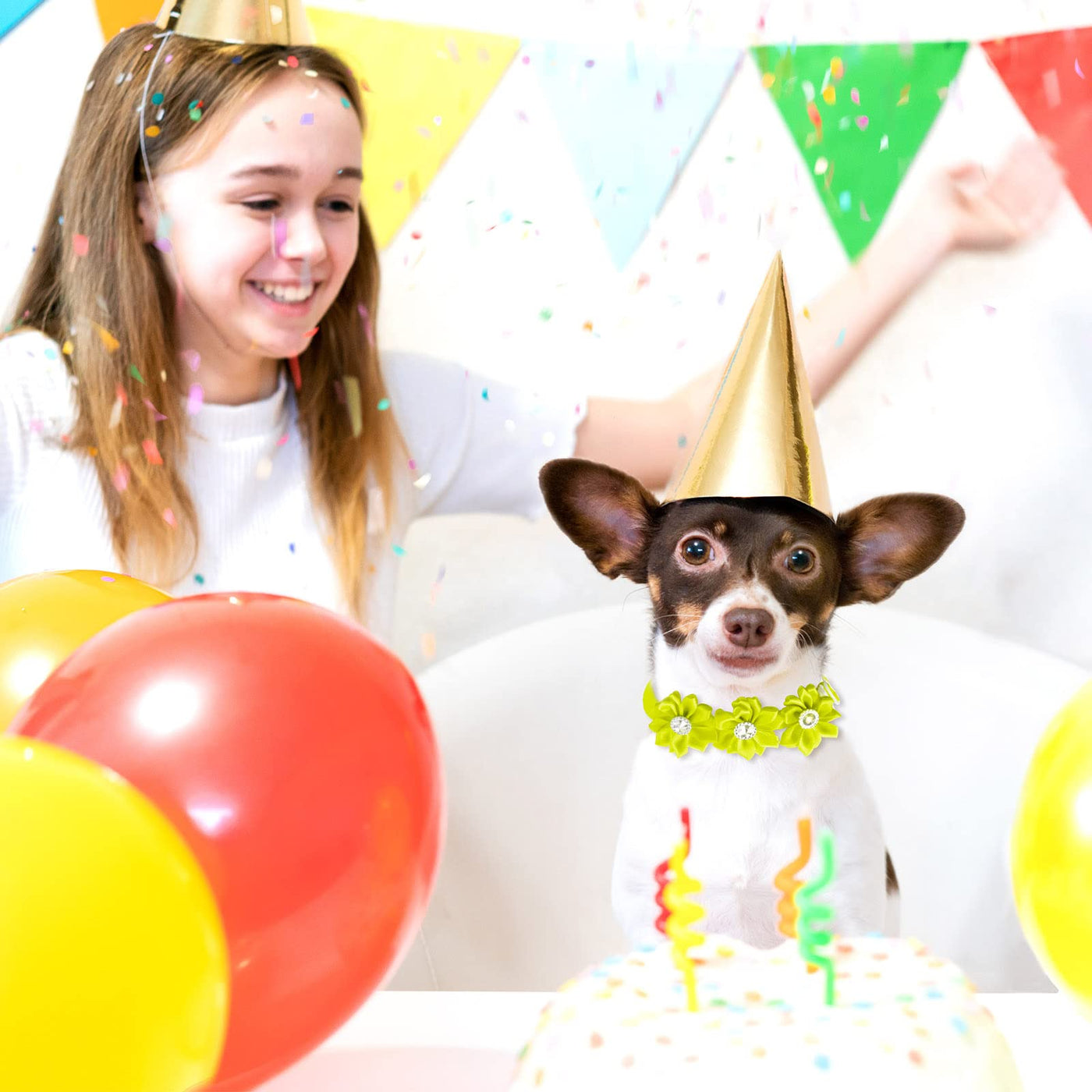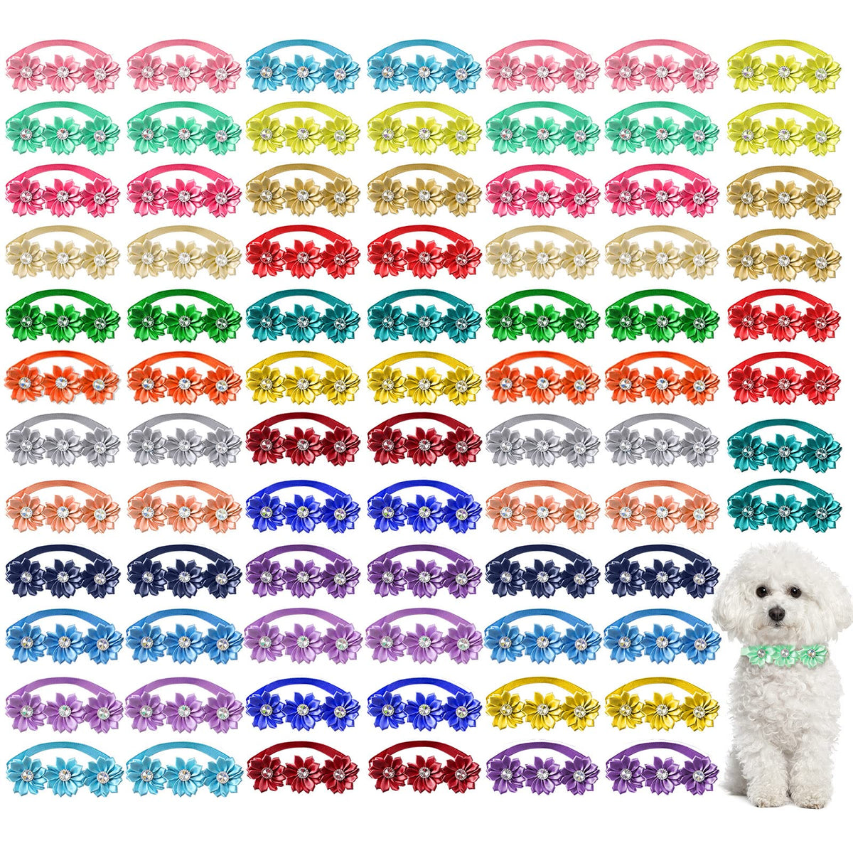 Reginary 80 Pcs Dog Bowtie Flower Collar Girl Dog Accessories Adjustable Girl Puppy Collars Cat Bow Tie Flower With Diamond Crys