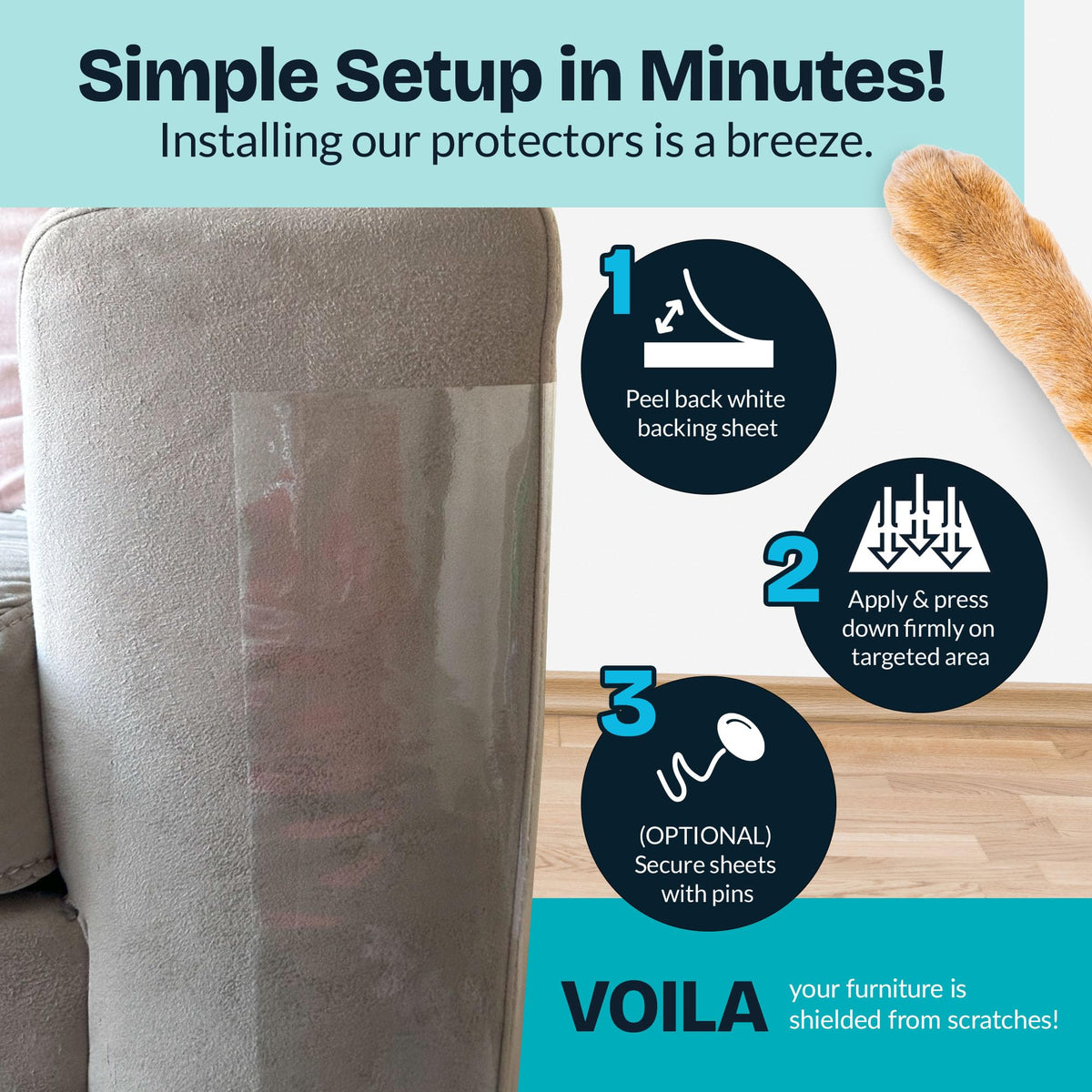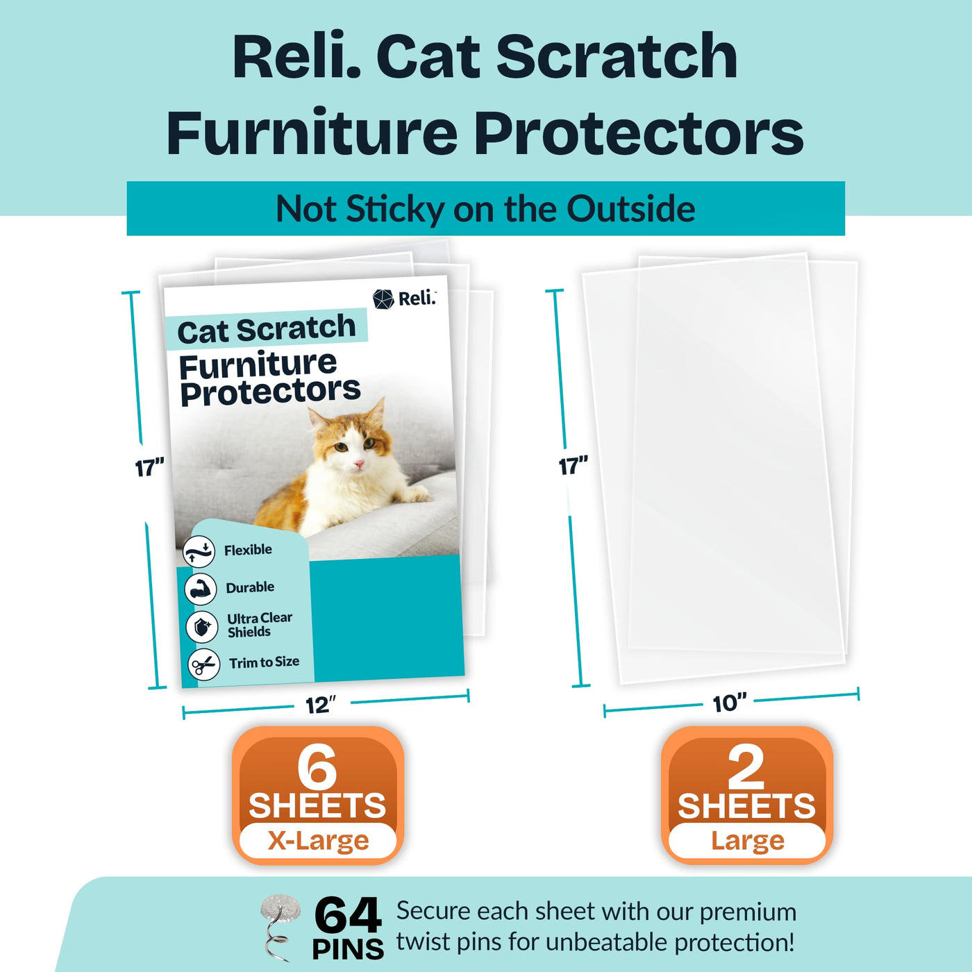 About Reli. Cat Scratch Furniture Protector (8 Pack W/ Pins), Combo Pack. Ideal Cat Couch Protector From Cat Claws, Clear Furniture Protectors From Cats Offer Verstatile Protection. Each Plastic Anti Scratch Furniture Protector For Sofa Safeguard All Your Furniture.