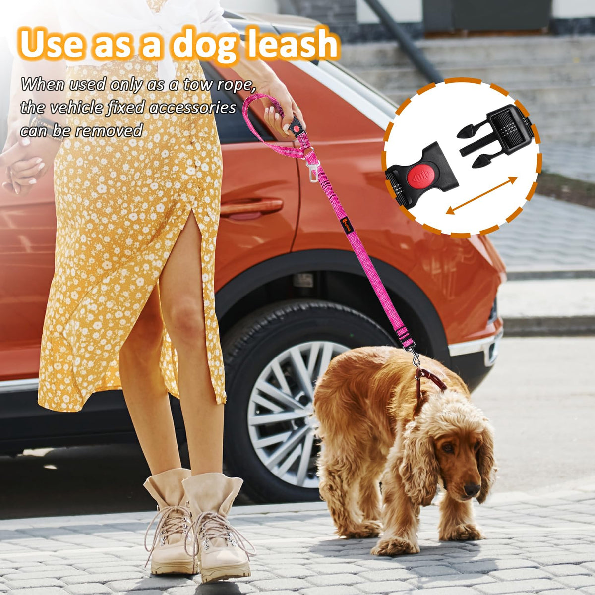 Removable Dog Seat Belt Harness For Car, 3 In 1 Pet Dog Car Seatbelt Leash, Retractable Restraint Secures To Vehicle Headrest & Adjustable Reflective Bungee Dog Seatbelt Tether, Rose And Black