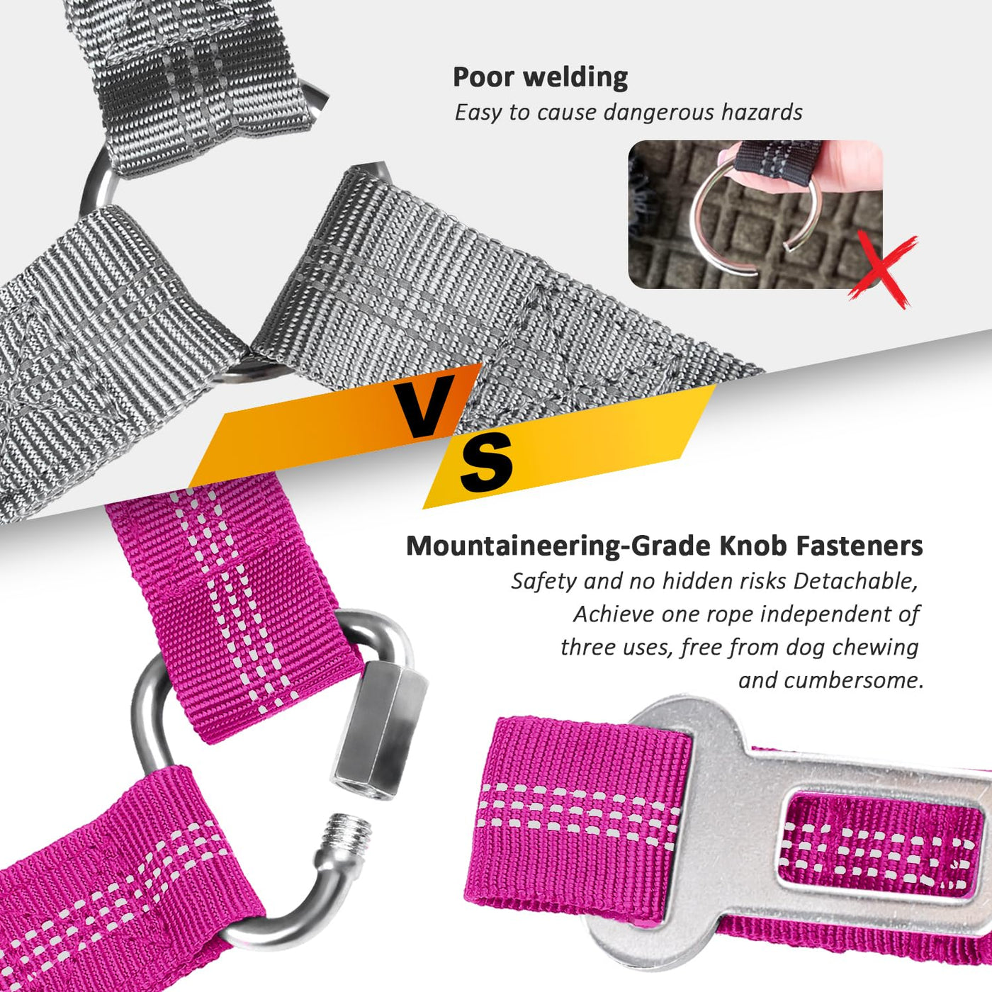 ?3-in-1 Multiple Uses Designed? For effective restraint and protection during travel. The dog seatbelt can be hung on the seat back rest or inserted separately in the seat belt buckle Equipped with elastic elastic rope and reflective rope design can be used as a dog leash so that you hold the dog partner safe night walk. Dog seat belt harness for car is perfect for pet lovers who like to take their dogs on the road to ensure the safety of your dog while you drive.