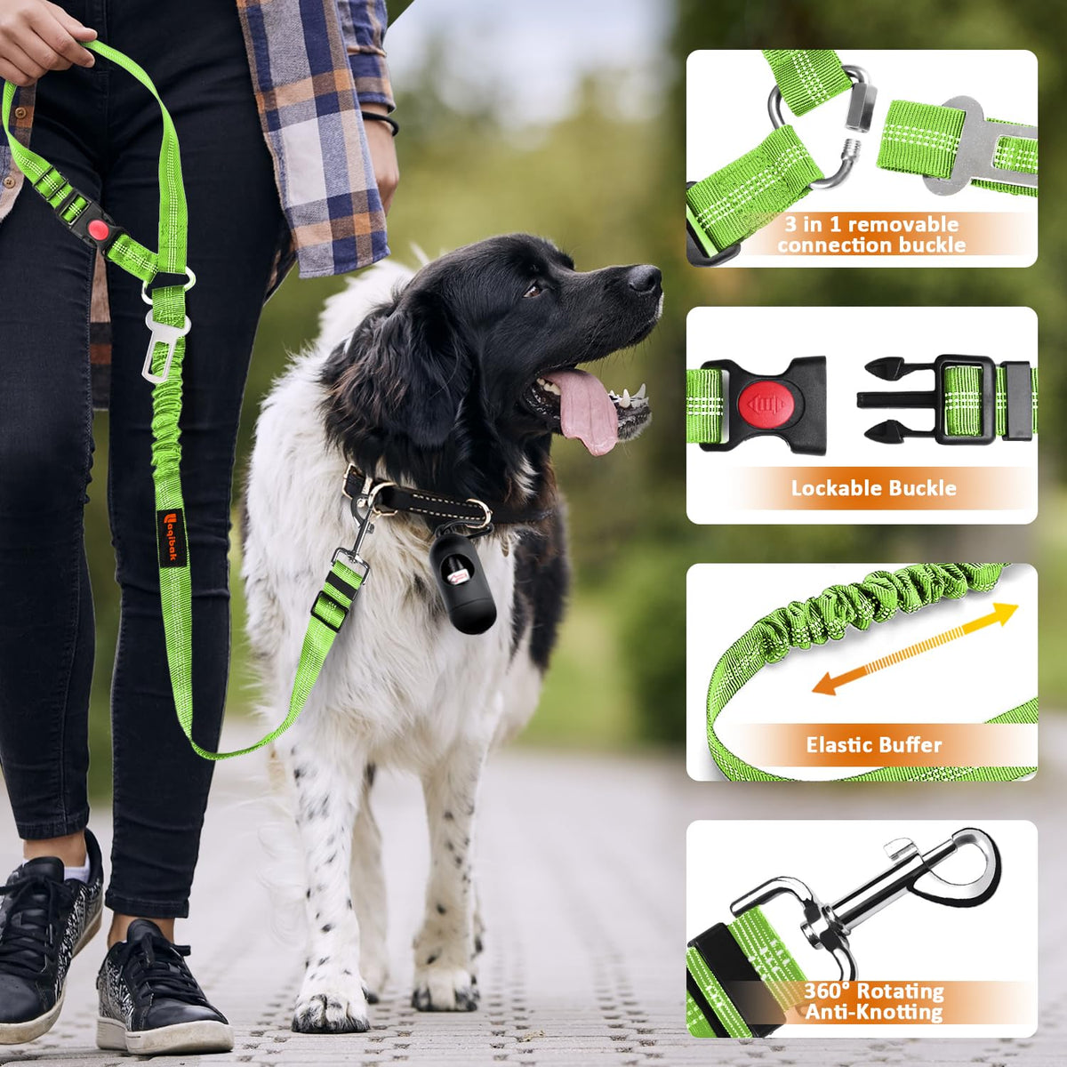 Q: What makes this dog seatbelt harness different from others?A: This dog seatbelt harness features a 3-in-1 design allowing for multiple uses, a reflective rope for night walks, and a 360° swivel attachment to prevent tangling, making it a versatile and practical choice for pet owners.