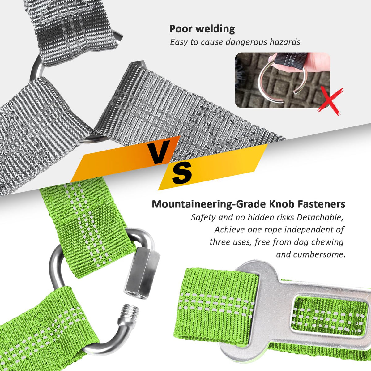 ?Durable Design? Specially designed removable car dog seatbelt in the separate use of seat belt buckle can be hung on the car headrest buckle accessories to remove can prevent dogs chew buckle accessories. How well your pup is trained cannot promise that he will not tug pull and chew on the dog car seat belts during the car ride our dog seat belt harness for car is made of high-density nylon fabric and the material of dog car harness is particularly durable.
