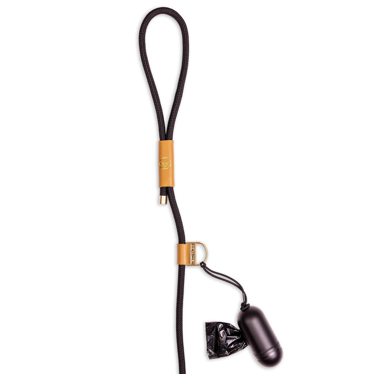 Remy+Roo Manhattan Black 5 Ft Heavy Duty Dog Leash | Custom Waste Bag Ring | Double Stitched Leather Dog Leash | Lobster Clasp | Brass Finishes | Strong Dog Leash For Large Medium And Small Dogs