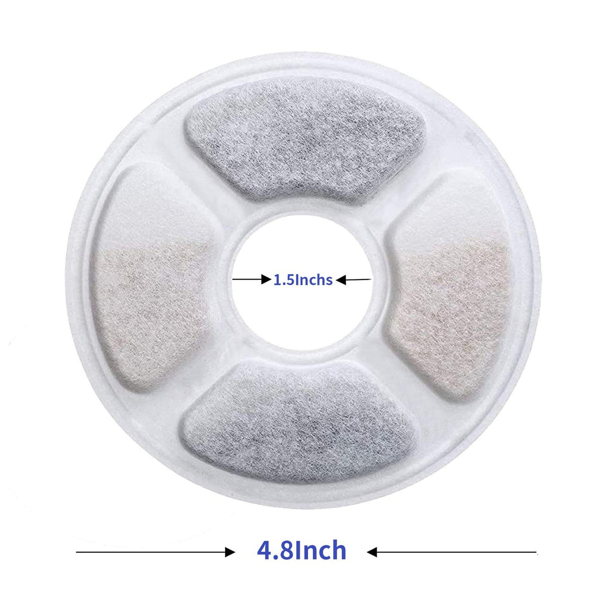 Specifications: Fits For: Pet Water Fountain/Dispenser Material: Cotton Layer, Premium Active Carbon Activated Carbon And Ion Exchange Resin Color: White Size: 4.8 X 1.5 Inch Package Included: 8 X Carbon Replacement Filters Suggestion: 1.Replacing Charcoal Filters Every 2 To 4 Weeks To Keep The Water Clean. 2.Replace More Frequently If Multiple Pets Using The Fountain, Rinse Filter With Water Thoroughly Before Use. 3.A Small Amount Of Carbon Dust May Be Released For The Life Of Filter Which Is Not Harmful To Your Pet.