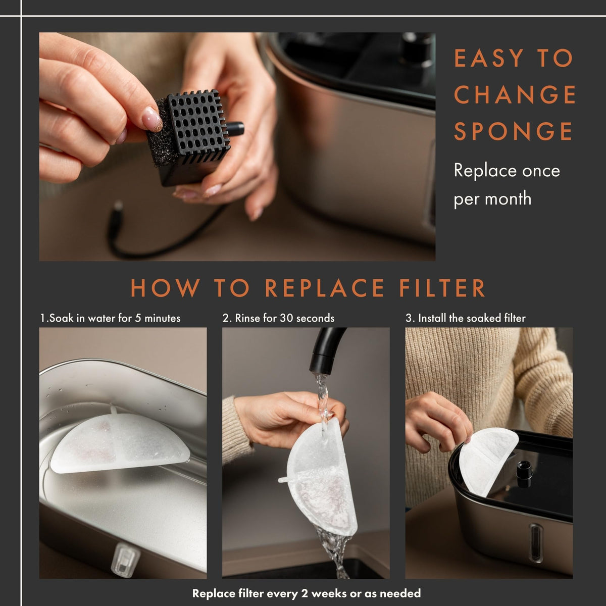 Lippup Replacement Filters For Stainless Steel Cat Water Fountain - Keep Your Pets Water Fresh And Clean Ensure Your Pet Always Has Access To Fresh, Clean, And Filtered Water With The Lippup Replacement Filters, Specifically Designed For The Lippup Stainless Steel Cat Water Fountain. These High-Quality Filters Utilize A 4-Stage Filtration System To Remove Impurities, Hair, Odors, And Chlorine, Providing Better-Tasting Water For Your Cat Or Dog. Why Choose Lippup Replacement Filters? ?Advanced 4-Stage Filtration: Each Filter Contains Activated Carbon, Ion Exchange Resin, And Non-Woven Fabric, Effectively Eliminating Contaminants And Keeping The Water Pure. ? Long-Lasting Freshness: With A Pack Of 8 Filters, Youll Have A 4-Month Supply (Replace Every 2 Weeks For Optimal Performance). ? Protects Your Fountain & Pump: Prevents Debris And Hair From Clogging The Pump, Extending Its Lifespan And Maintaining Smooth Operation. ? Easy To Use & Replace: Simply Rinse Each Filter Under Running Water For 3-5 Minutes Before Inserting It Into The Fountain. Give Your Pet The Best Hydration Experience Cats And Dogs Are Naturally Drawn To Clean, Flowing Water. With Lippup Replacement Filters, Your Pet Will Drink More Water, Stay Hydrated, And Enjoy A Healthier Lifestyle.
