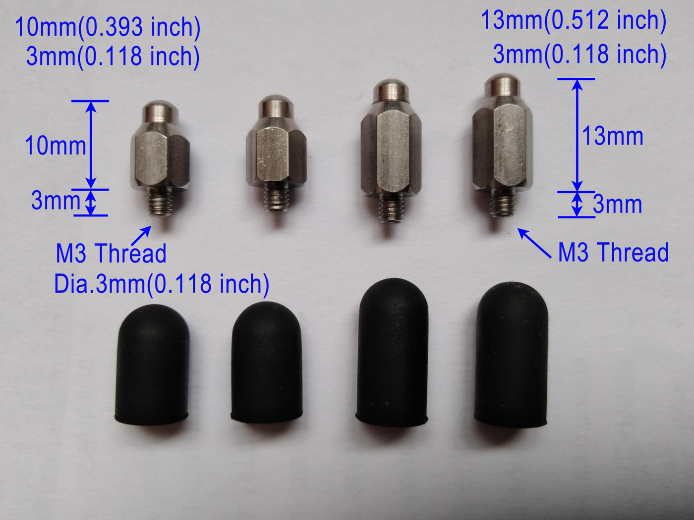Item Informaton 2 Male Type Shock Collar Metal Probes: 0.78 Inch(20Mm) Long With Extra 3Mm Long External Thread, Fit For M3 Internal Thread Hole Deepth No Less Than 3Mm 2 Conductive Silicone Covers:0.59 Inch(15Mm) Long Install The Silicone Covers On Probes Before Use Package Includes 2Xcontact Points 2Xconductive Silicone