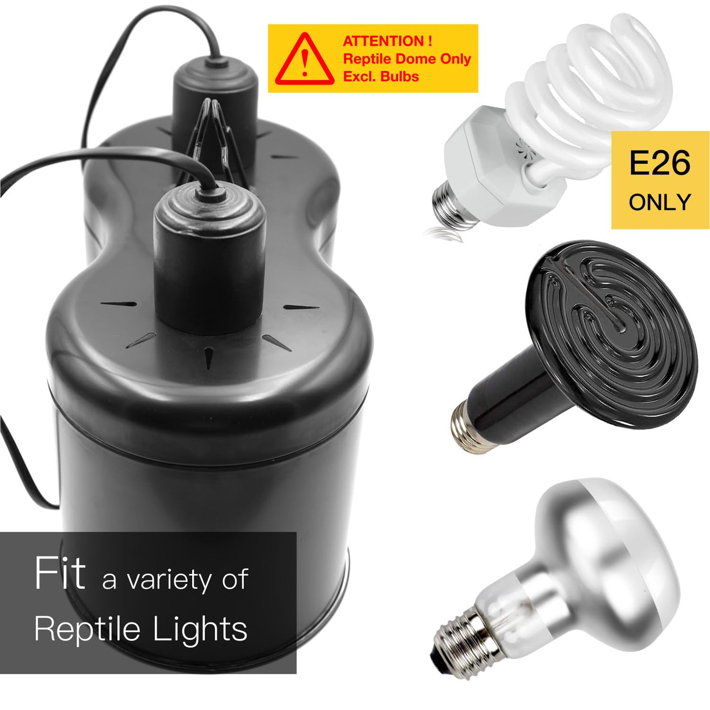 ReptiKing Reptile Dual Dome 12inch, Fits Reptile Light/Heat Lamp/UVB Light, Max. 160W Each,Patent Design K8561, Reptile Light Fi