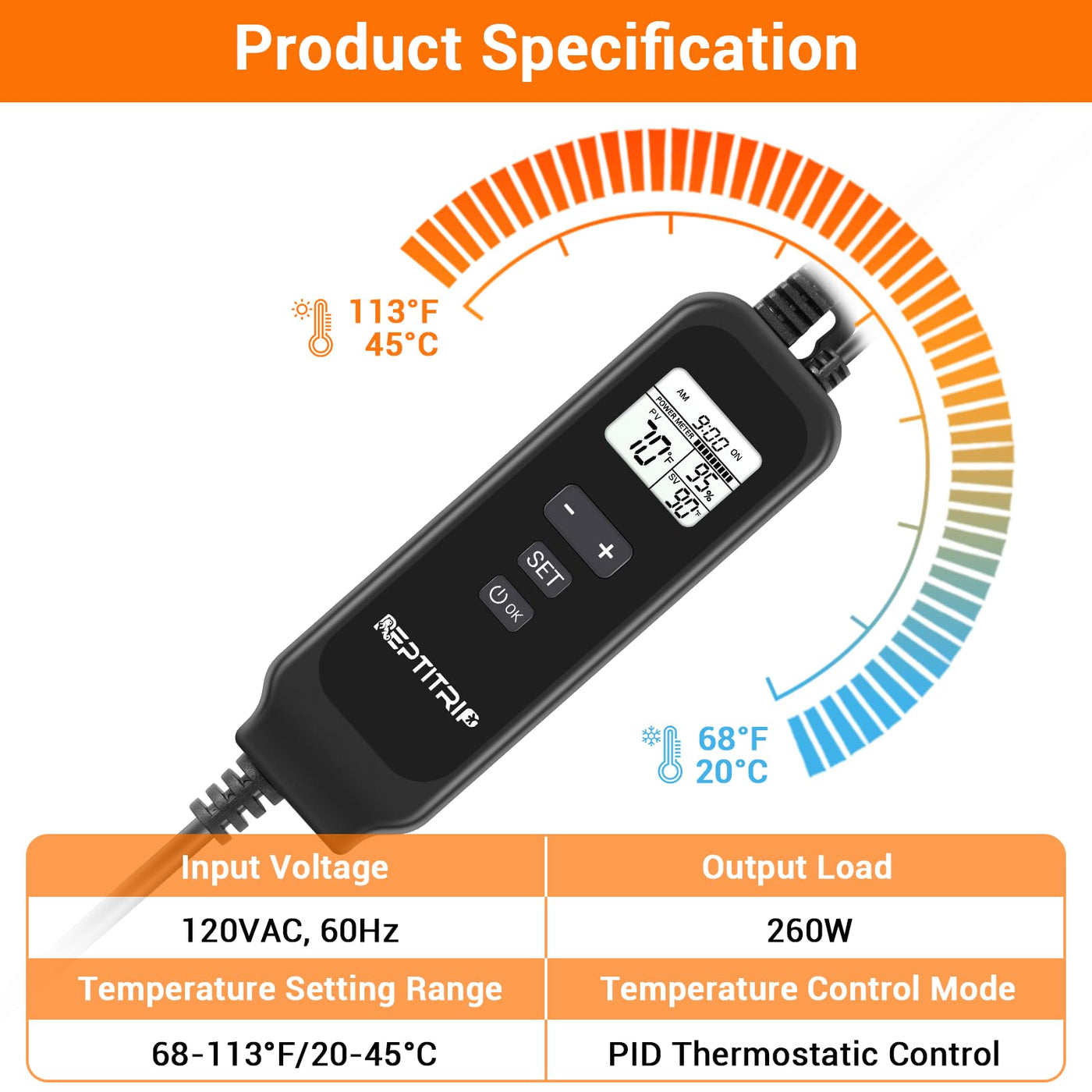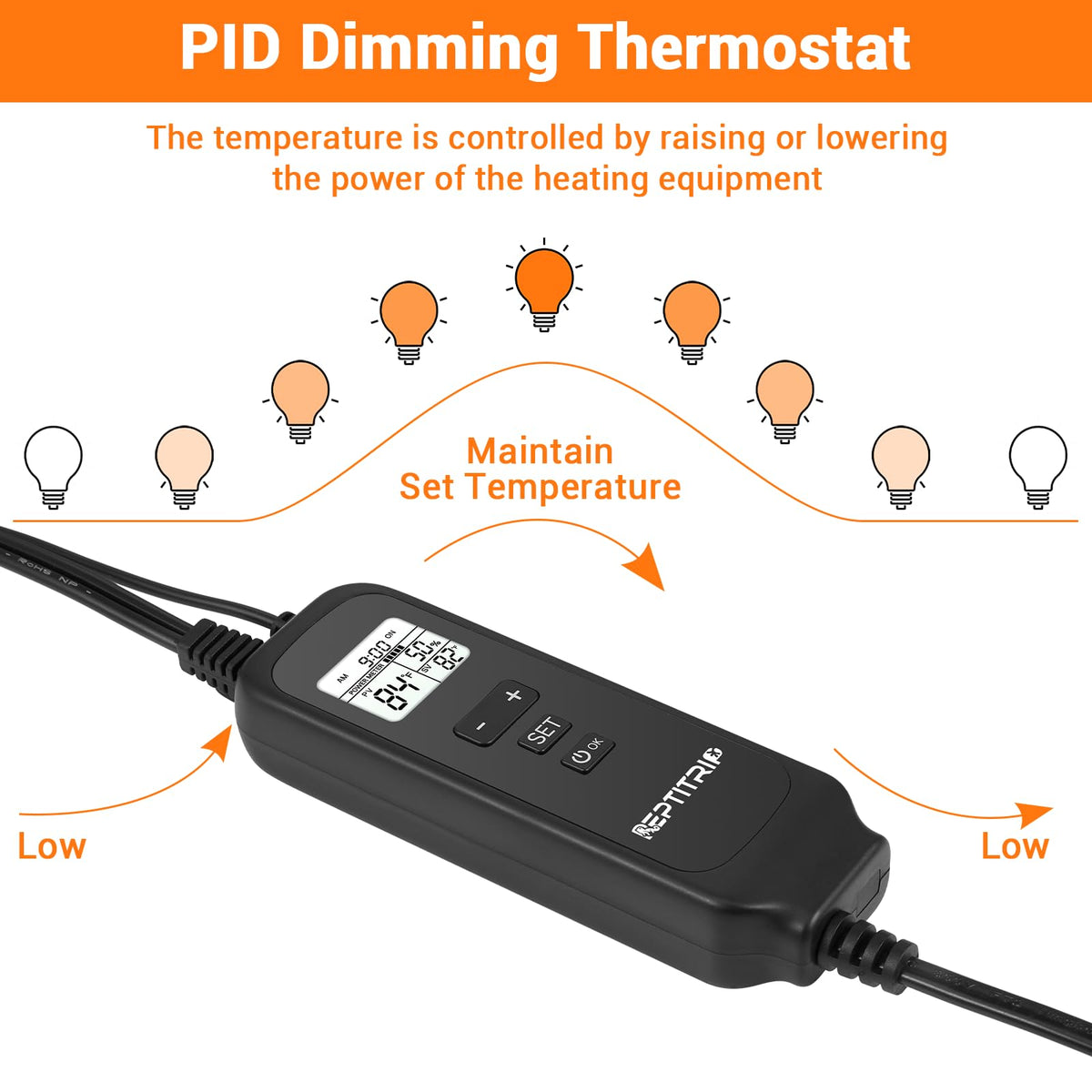 Reptile Dimming Thermostat, Adjustable Day And Night Temperature Settings, For Reptile Heat Lamp Heat Pad, Pid Temperature Controller, Memory Function, ?/?
