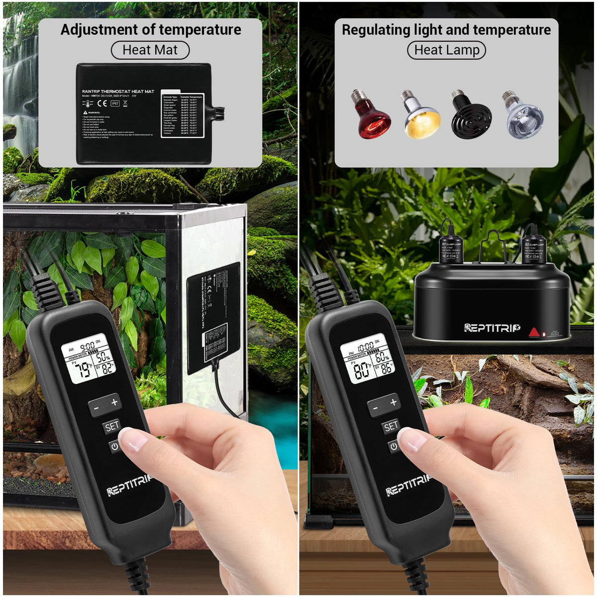 Reptile Dimming Thermostat, Adjustable Day And Night Temperature, Thermostat For Reptile Heat Lamp Heat Pad, Pid Temperature Con