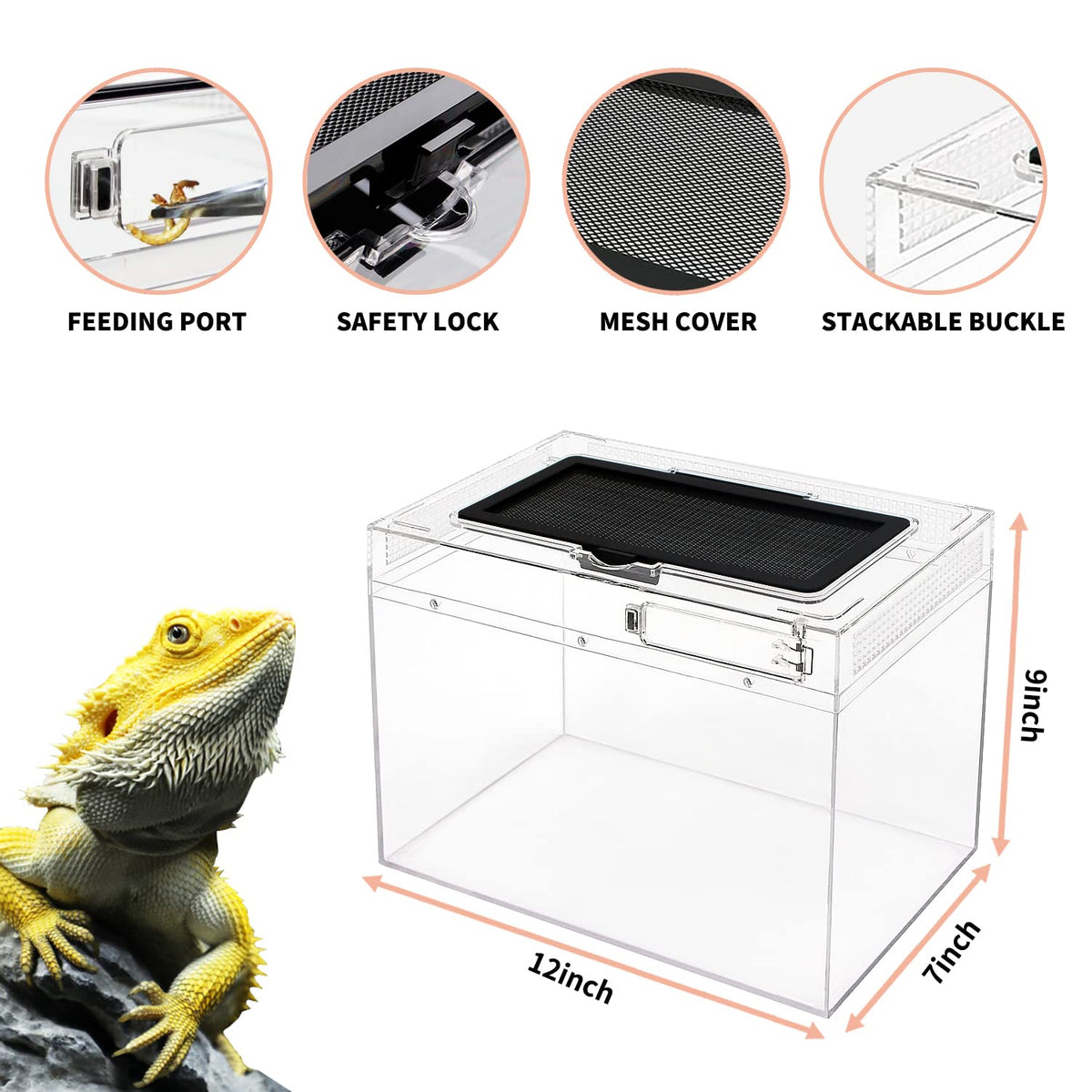 Reptile Growth Mini Reptile Terrarium,12'' x 7''x 9'' Reptile Tank with Full View Visually Appealing,for Insect,Fish,Tarantula,H