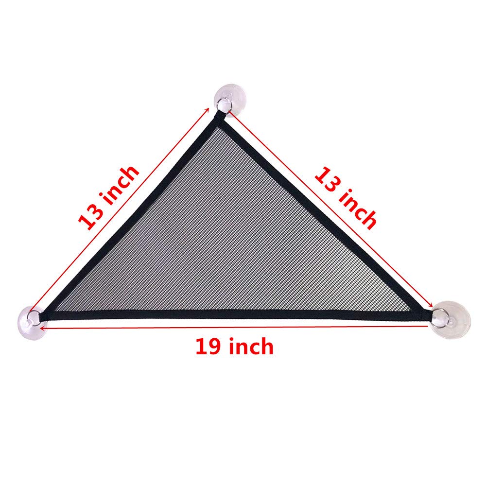 Q: What are the dimensions of the hammock and how many packs are included?A: The hammock has a triangular shape with side lengths of 13 inches and a height of 19 inches. This product comes in a 2-pack, allowing you to create a multi-level environment for your reptiles.