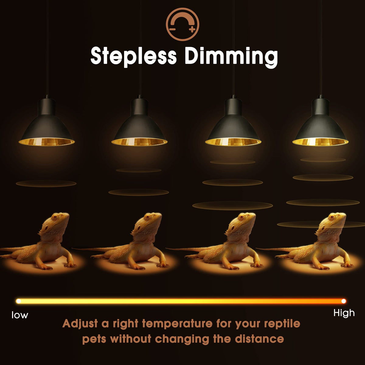 Product InformationWattage: Max 50WVlotage:120VDimmable: YesBrightness: 500LMCRI: 98+ Package Included: 2-pack G9 heat bulb & 1-pack aluminium heat lamp. Tip: please be cautious to the hot surface after using. Essential Warmth for Reptiles: With 50 watt high output, this reptile light provides sufficient heat for reptiles, which is essential for promoting their appetite, improving their digestion and courtship activities. Great Aluminum Reflector: Made of great aluminium alloy material, our reptile heat lamp can significantly increase the output of UVA lighting. Perfect for bearded dragon, gecko, snake, lizard, chameleon, frog, toad, turtle, etc. Dimmable Heat Lamp: Adjust the temperature in the tank without changing the distance. With the stepless dimming function, this Reptile Heat Lamp is easy to adjust a right temperature for your reptile pets. Excellent Heat Dissipation: The radiating and ventilation hole on the top can make sure the good heat dissipation effect. High Quality and Satisfied Service: Our Briignite Heat Lamp concerns about your reptile pet's health and better growth. Please contact us for any questions and we are committed to fixing your issues timely.