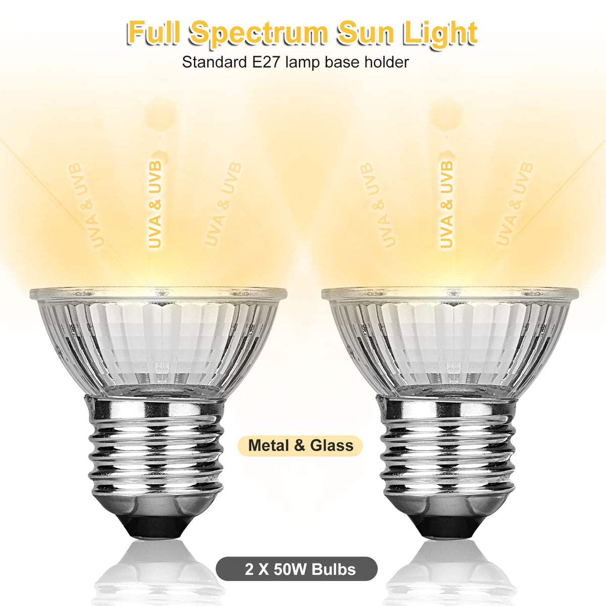 Packing included: 1 x Reptile Heat Lamp Stand 2 x 50W Bulbs