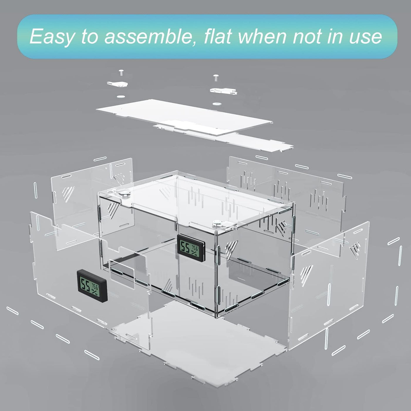 Reptile Terrariums, With Temperature Hygrometer, 15.7''X9.9''X7.1''Acrylic Reptile Breeding Box Terrarium Cage Tank For Small Re