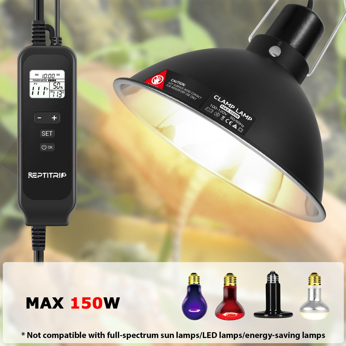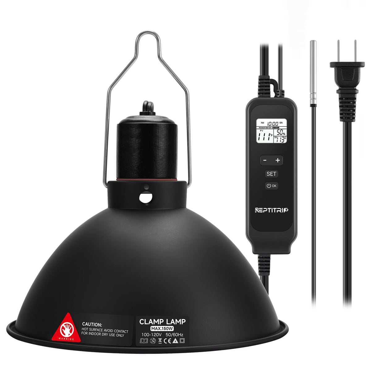 Reptitrip 8.5-Inch Day/Night Thermostatic Reptile Light Fixture - Heat Lamp Temperature Controller (Max 150W) For Bearded Dragon