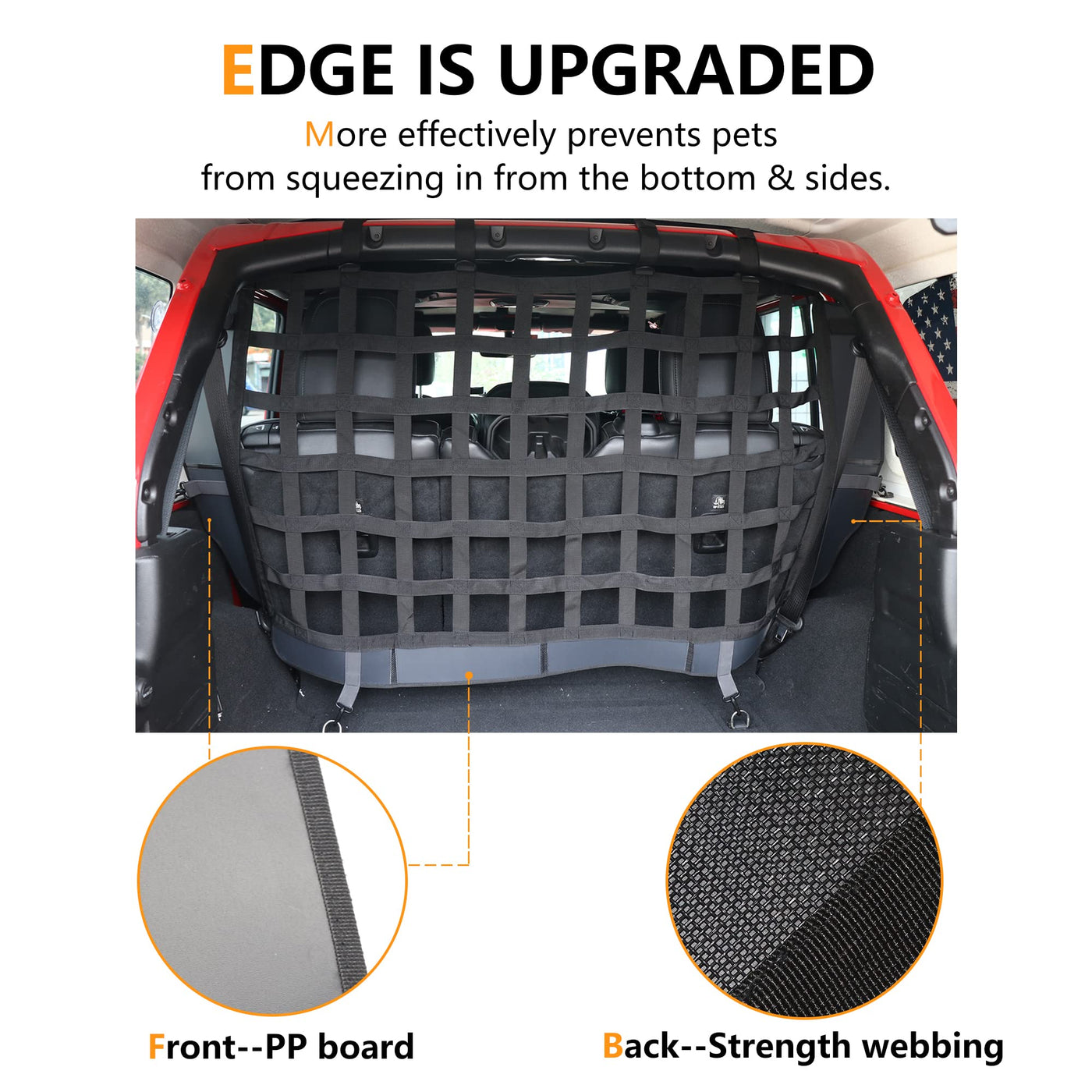 Rerpro Pet Net Safety Dog Barrier For 2007-2025 Jeep Wrangler Jk Jl 4 Door Accessories, Behind Rear Seat Pet Dog Covers Trunk Cargo Isolation Liner Net For Jeep Wrangler