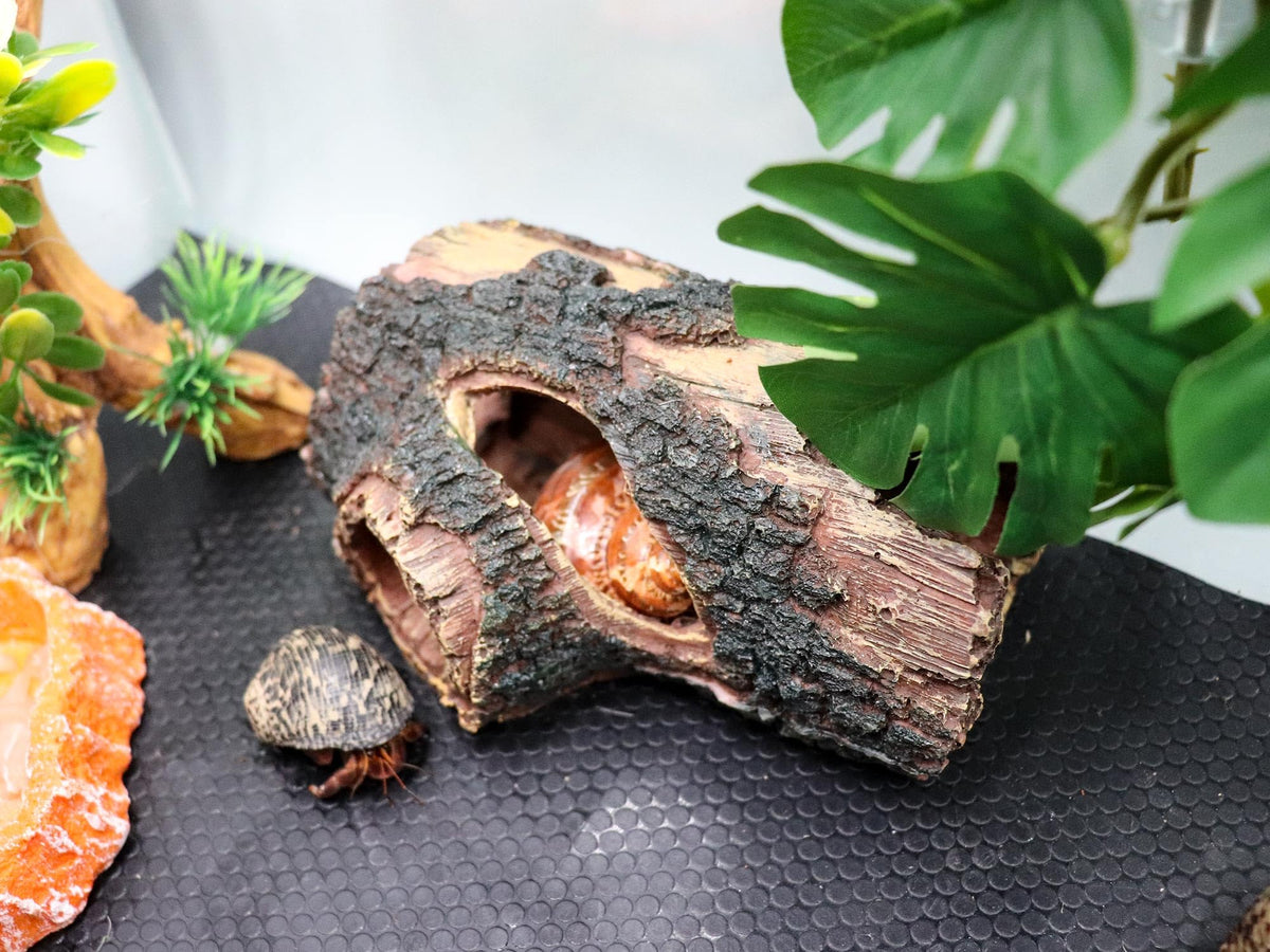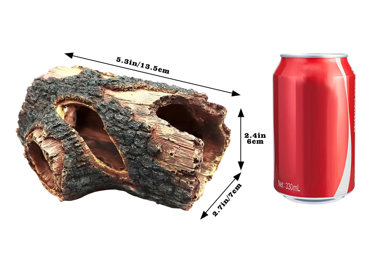 Introduce a touch of nature into your terrarium or reptile habitat with this Hermit Crab Hideout. Crafted from durable resin, this simulation stone cave provides a cozy and secure retreat for your hermit crabs, lizards, spiders, geckos, bearded dragons, and other small pets. Its textured surface mimics the look and feel of a natural rock formation, allowing your pets to climb, hide, and explore. Measuring approximately 5.5 x 4.5 x 3.5 inches, this hideout is an ideal size for most terrariums and aquariums. Enhance your pets environment and provide them with a comfortable space to call their own with this versatile Hermit Crab Hideout.