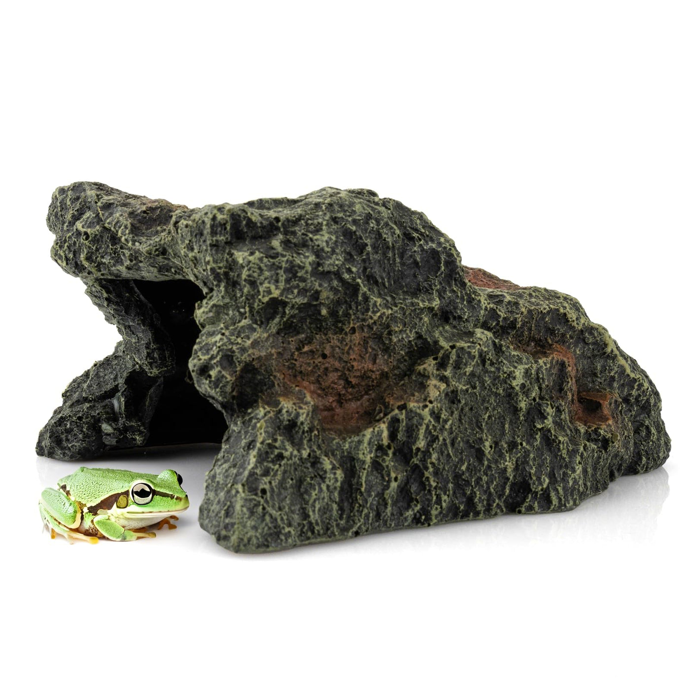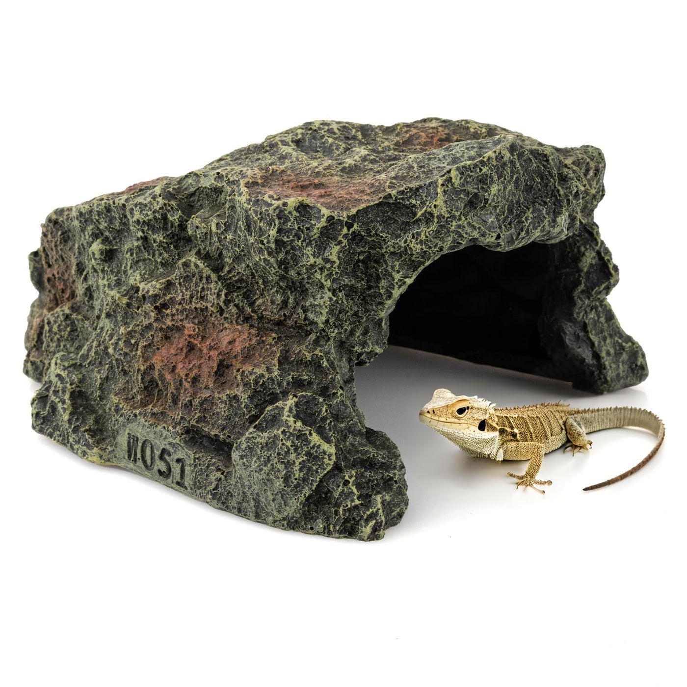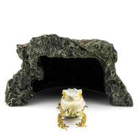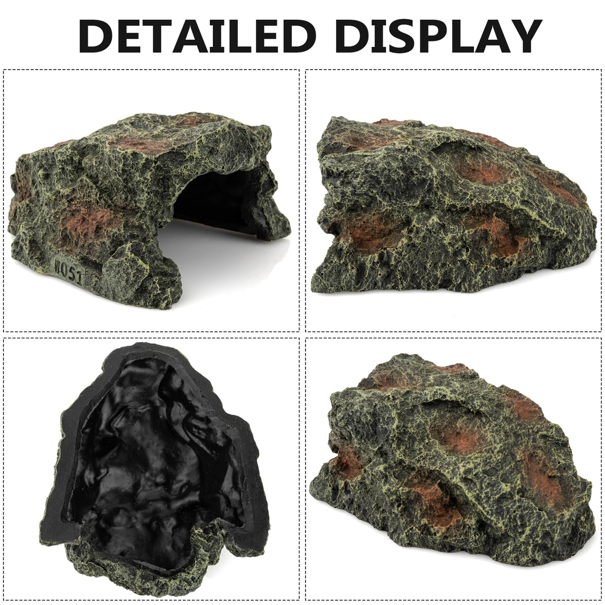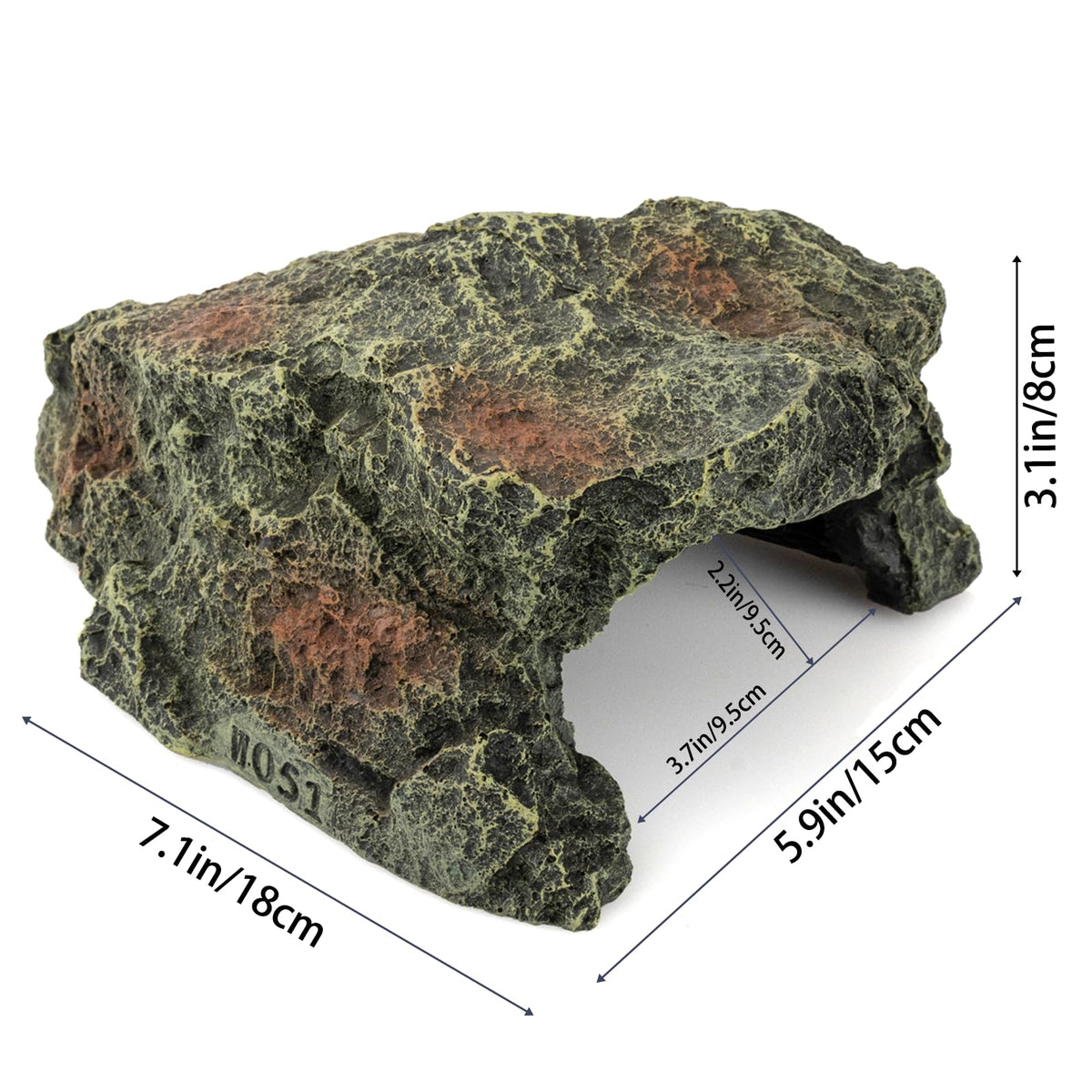 Naturalistic Appearance: The natural rock-like design of our resin turtle tank accessories seamlessly blends into both terrestrial and aquatic environments, creating a visually appealing and realistic habitat for your reptile friends. | Secure and Stable: Our hideouts are specially designed to provide a stable environment for reptiles of all sizes. These accessories are not easily tipped over by larger reptiles, ensuring a safe and secure hiding spot for your pets. | Stress Reduction and Privacy: Our hideouts offer a natural hiding, shedding, and egg-laying environment for reptiles, providing privacy and reducing stress. They also create a humid microclimate, perfect for shedding, hiding, or egg laying. | Versatile Usage: These turtle tank accessories are suitable for small and medium-sized reptiles, amphibians, and even as a hamster house or fish shrimp shelter. They can also be used as decoration for reptile tanks, adding a touch of beauty to their habitat. | Size: Outer size: 7.5x6.3x3.5; Inner size: 6.3x4x 2.4