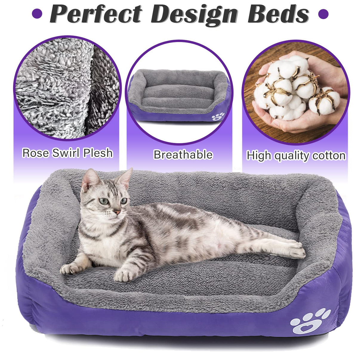 Resulzon Square Dog Cat Beds Mattress Washable Pads Room, Soft Plush Faux Fur Sleeping Pet Fleece Bed Mat For Small Medium Doggy
