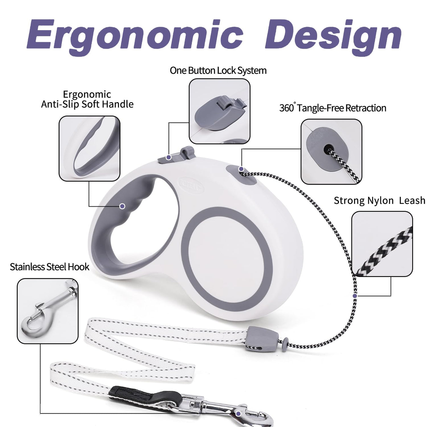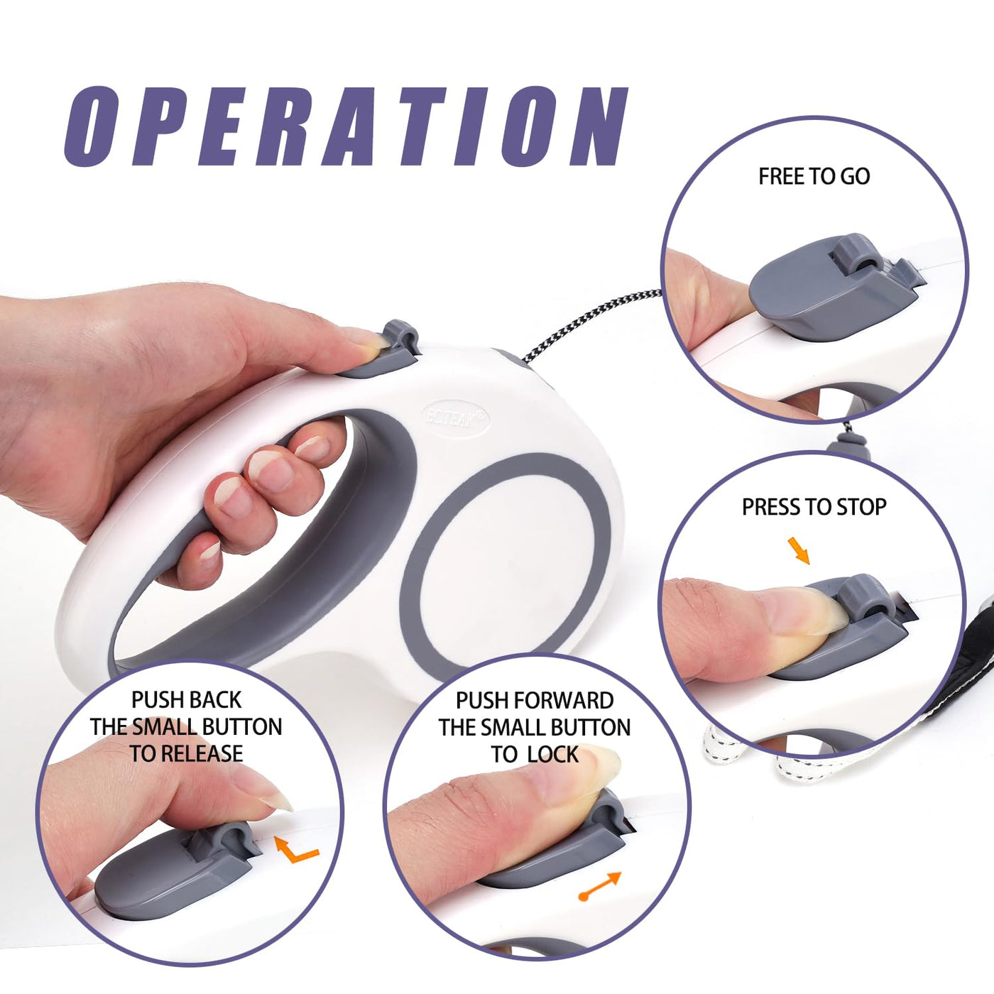Retractable Dog Leash, 30 Ft/ 20 Ft Dog Walking Leash For Small Medium Large Dogs Up To 77 Lbs/ 44 Lbs, Heavy Duty No Tangle (Wh