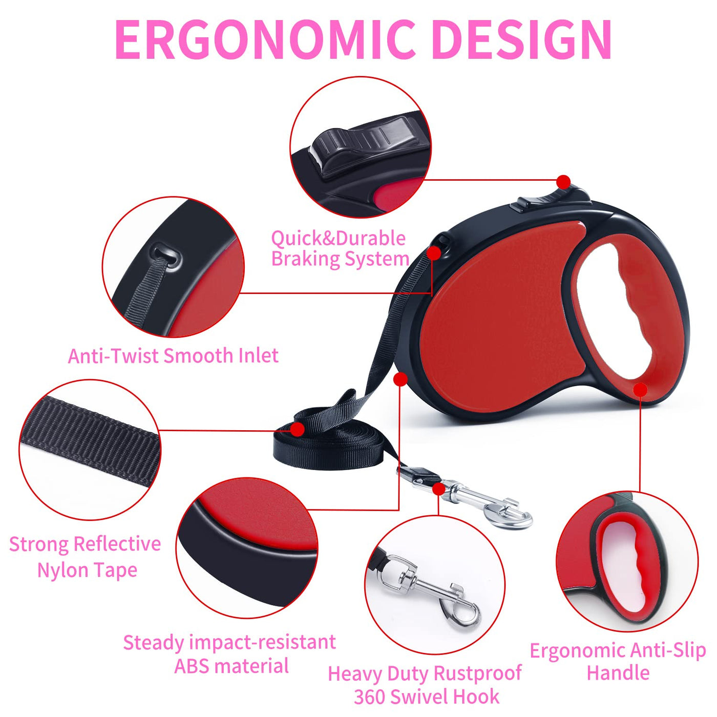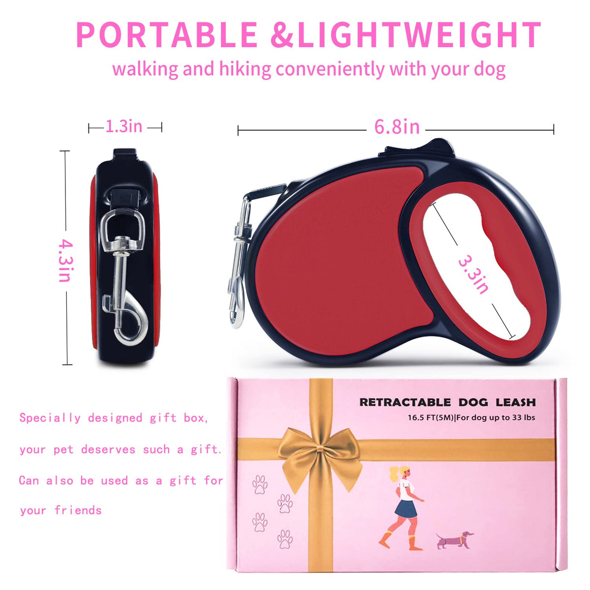 Retractable Dog Leash,[Strong Nylon Tape][One-Handed One Button Lock] For Small Medium Dogs And Cats,16Ft Pet Walking Leash With 360Tangle-Free Design,Anti-Slip Handle,Gift Package