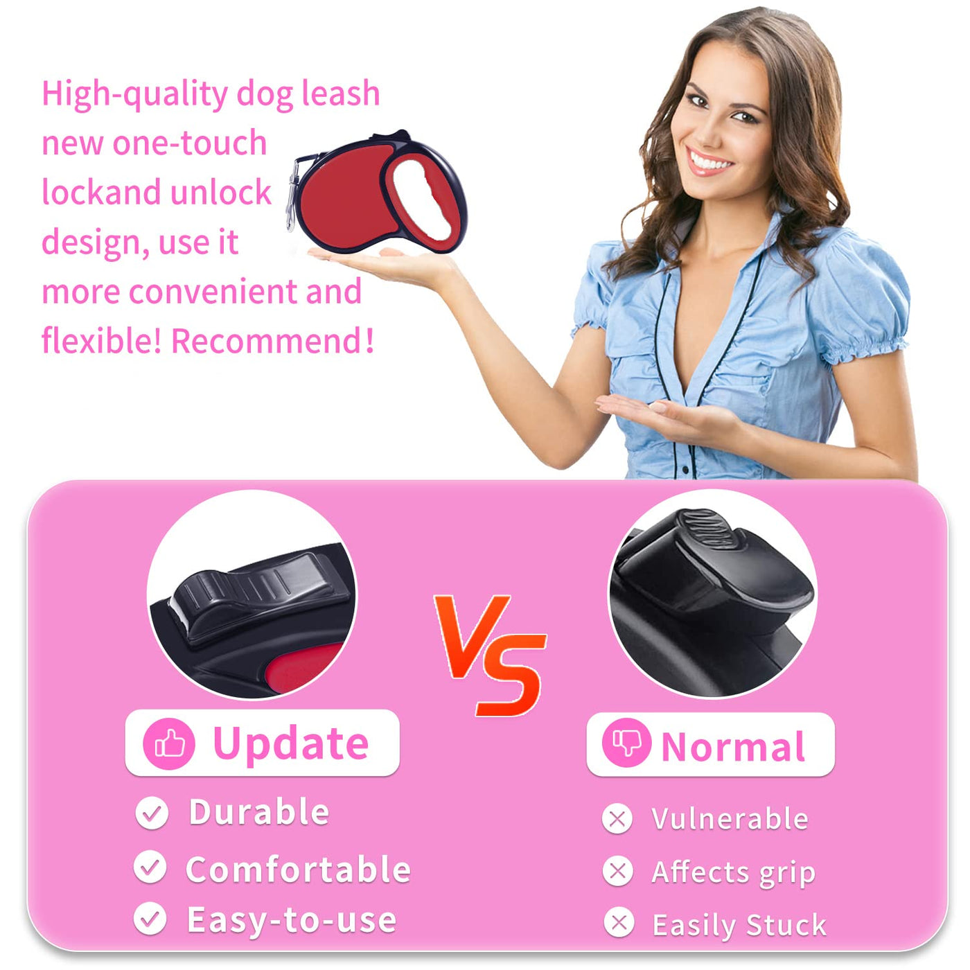 Retractable Dog Leash,[Strong Nylon Tape][One-Handed One Button Lock] For Small Medium Dogs And Cats,16Ft Pet Walking Leash With