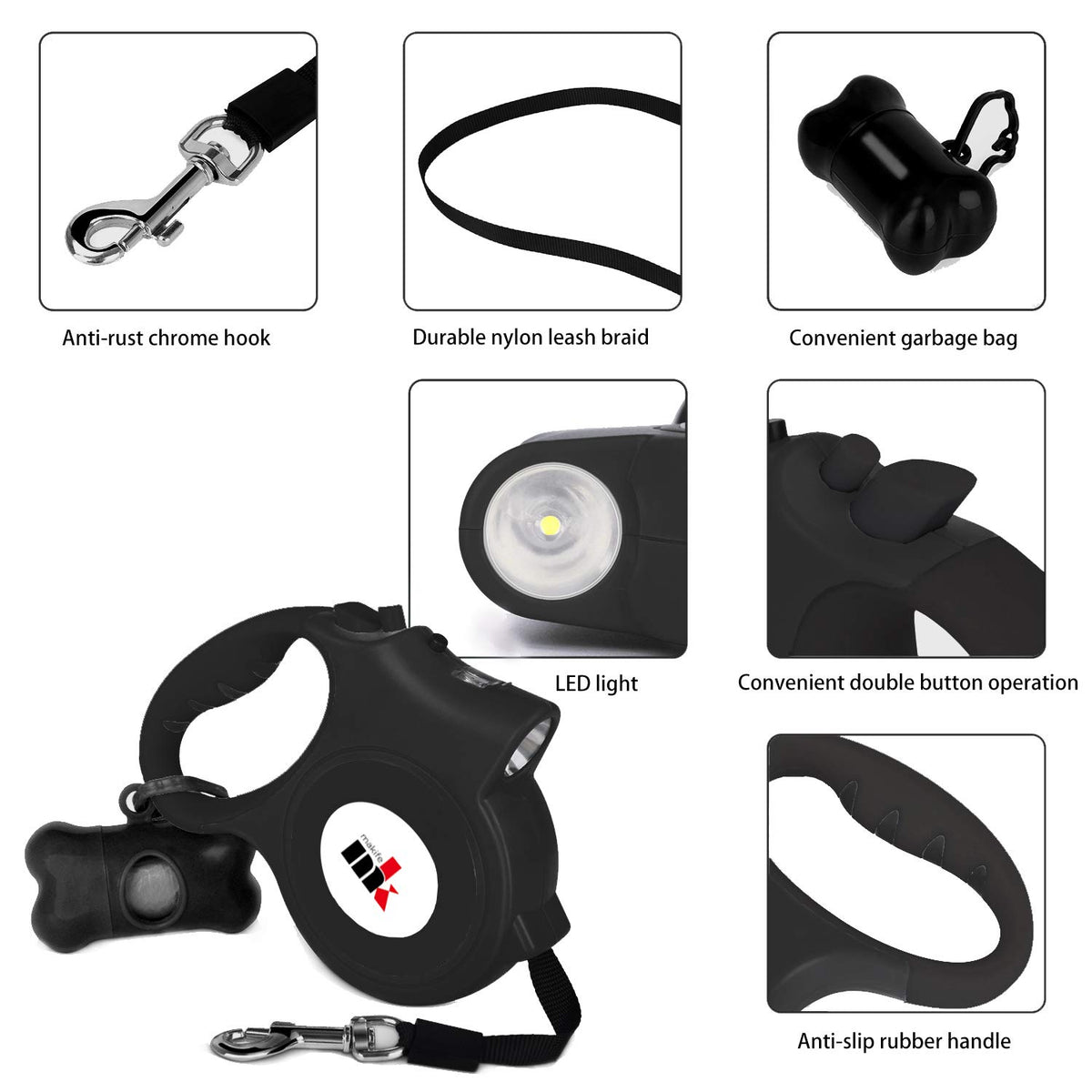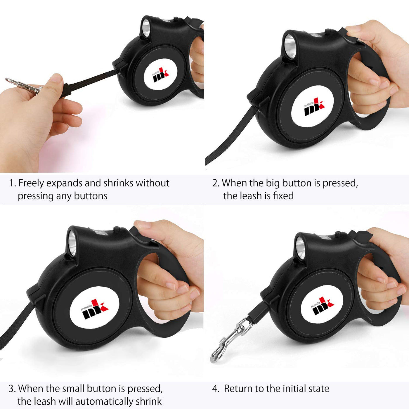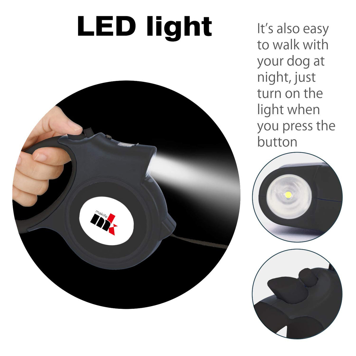 Retractable Dog Leash With Led Light Makife 5M Extendable Dog Lead For Small Medium Puppis Up To 25Kgs, One-Hand Brake & Lock Sy