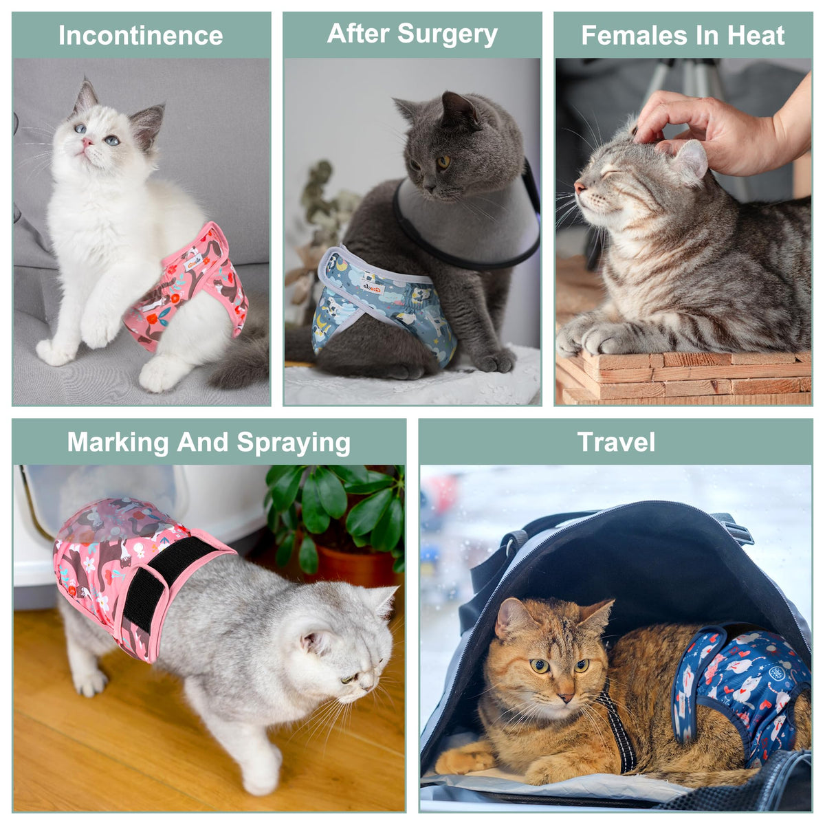 Reusable Cat Diapers 3 Pack With Good Absorbency Kitten Diapers Small For Female & Male Cats - Easy To Put On, Secure Fit