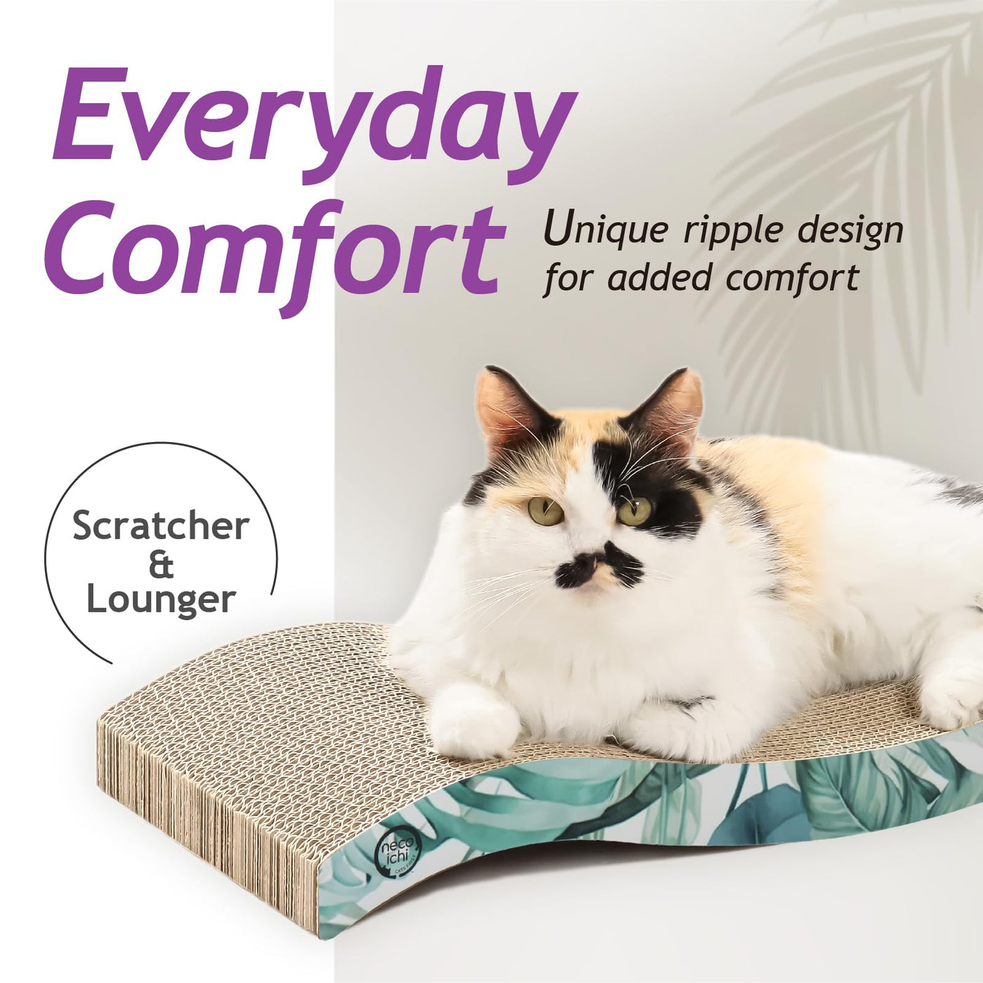 Reversible Wave Cat Scratcher For Indoor Cats - Cat Scratching Board, Horizontal Cat Scratch Pad Lounger With Reversible Usabili