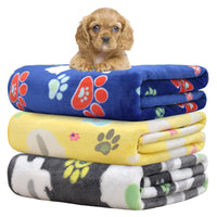 Rezutan Premium Soft Dog & Puppy Blankets, 1 Pack With Flannel Cute Elephant Dog Paw, Small Cat & Kitten Blankets, Grey/Blue/Yel