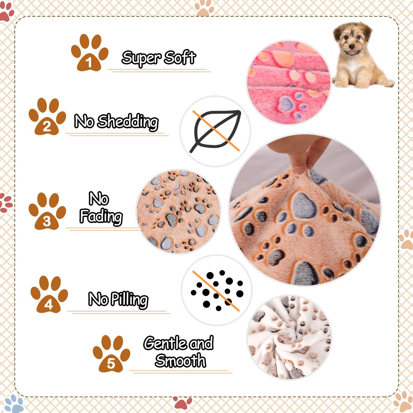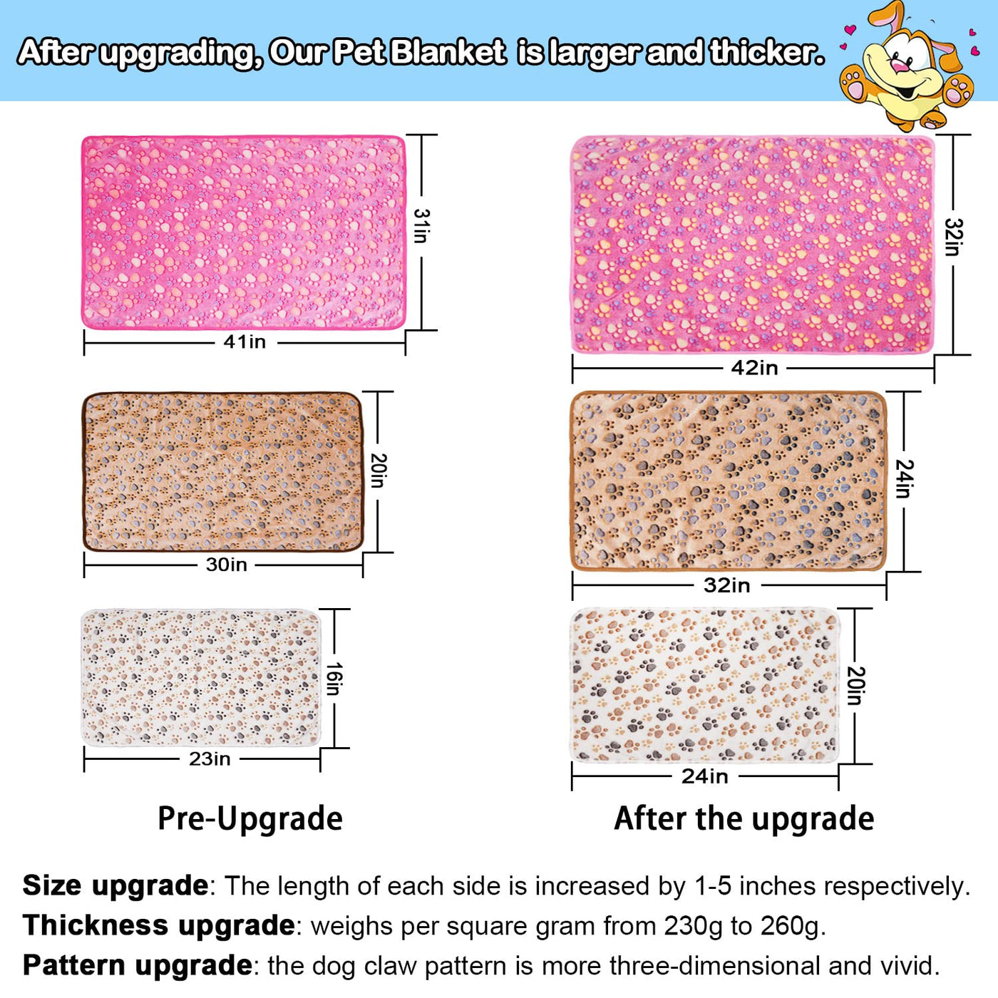 Rezutan Upgraded Dog Blankets For Large Dogs, 3 Pack Dog Cat Blankets Washable 42' X 32', Soft Pet Mat Throw Cover For Kennel Crate Bed, Cute Paw Pattern, Dog Blanket, Pet Blanket