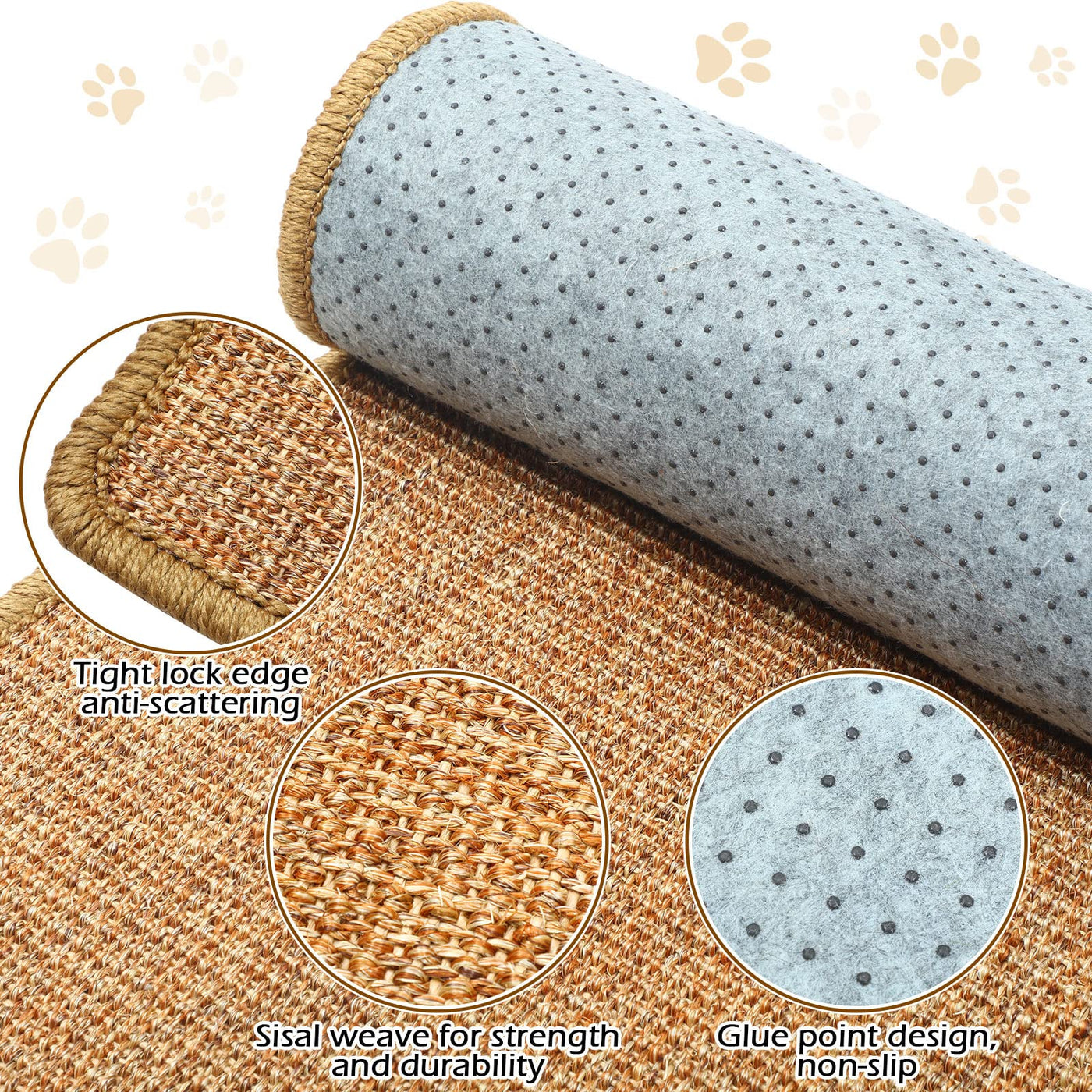 Features: Suitable home accessories: The cat scratcher mat has a vintage design that will blend in beautifully with your home decor. Sisal rugs do not contain any adhesives, so you don't have to worry about your pet's safety while playing. Attractive enough: The cat scratching mat is stable, durable and not easy to deform, you can sprinkle a little catnip on it, your cat will prefer to play, stretch and sleep on this natural sisal surface. Specifications: Material: natural sisalSize: 31.5 x 15.75 inches/ 80 x 40 cmColor: brownPackage includes: 2 x Natural fabric cat padWarm notes: Manual measurement, please allow little size errors. The colors shown on picture may be biased from the true color, please refer the real objects. Cleaning precautions: Shake off the dust from the surface or prep the mat with a vacuum cleaner. It is good to wash with warm water (30 degrees Celsius/ 86 degrees Fahrenheit). Add carpet cleaner for better results. Do not use the dryer after washing, carefully hang it in a dry place to dry in the wind or sun.