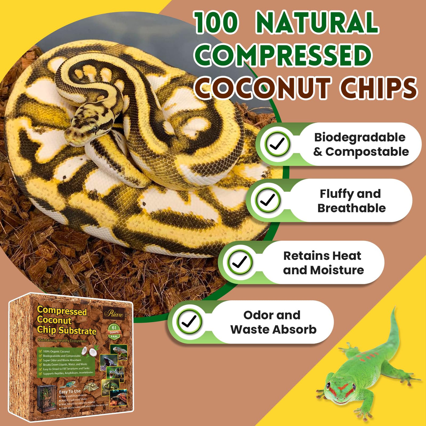 ?Retain Heat and Moisture?The coconut husk substrate have remarkable water absorption and moisture retention capabilities which help your terrarium or vivarium maintain proper temperature and humidity that provide a comfortable environment for pet to sleep move around or breeding it's ideal bedding for hibernation and hatching of reptiles.