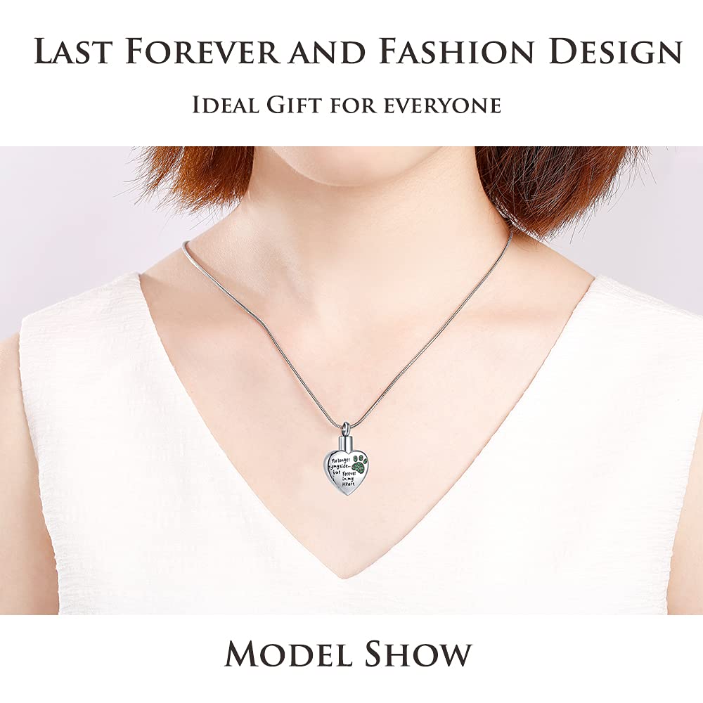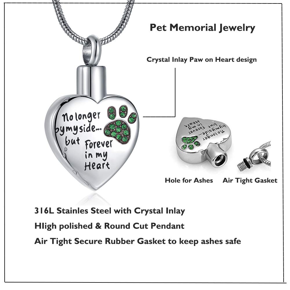 Rimzviux Pet Cremation Jewelry For Ashes Waterproof Dog Cat Urn Pet Memorial Gifts Ashes Necklace No Longer By My Side Forever In My Heart (Jade Green Paw)