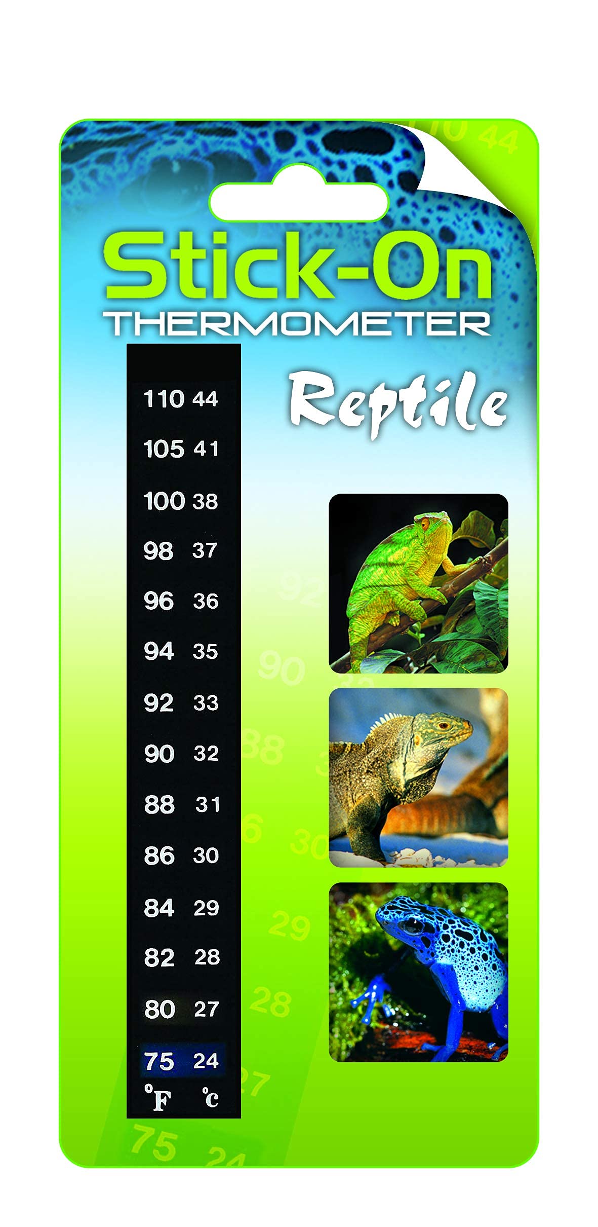 The Rio Stick-On Digital Reptile Thermometer Is A Great Way To Keep An Eye On Your Reptiles Temperature. This Thermometer Strip Is Temperature Sensitive & Splashproof. Colored Marking Shows The Current Reading Temperature In Both Centigrade & Fahrenheit.Easy To Readsimple Stick-On Design Is Easy To Applyrange Of 75? To 110? And 24? To 44?Splash Proofideal For Reptiles And Amphibians
