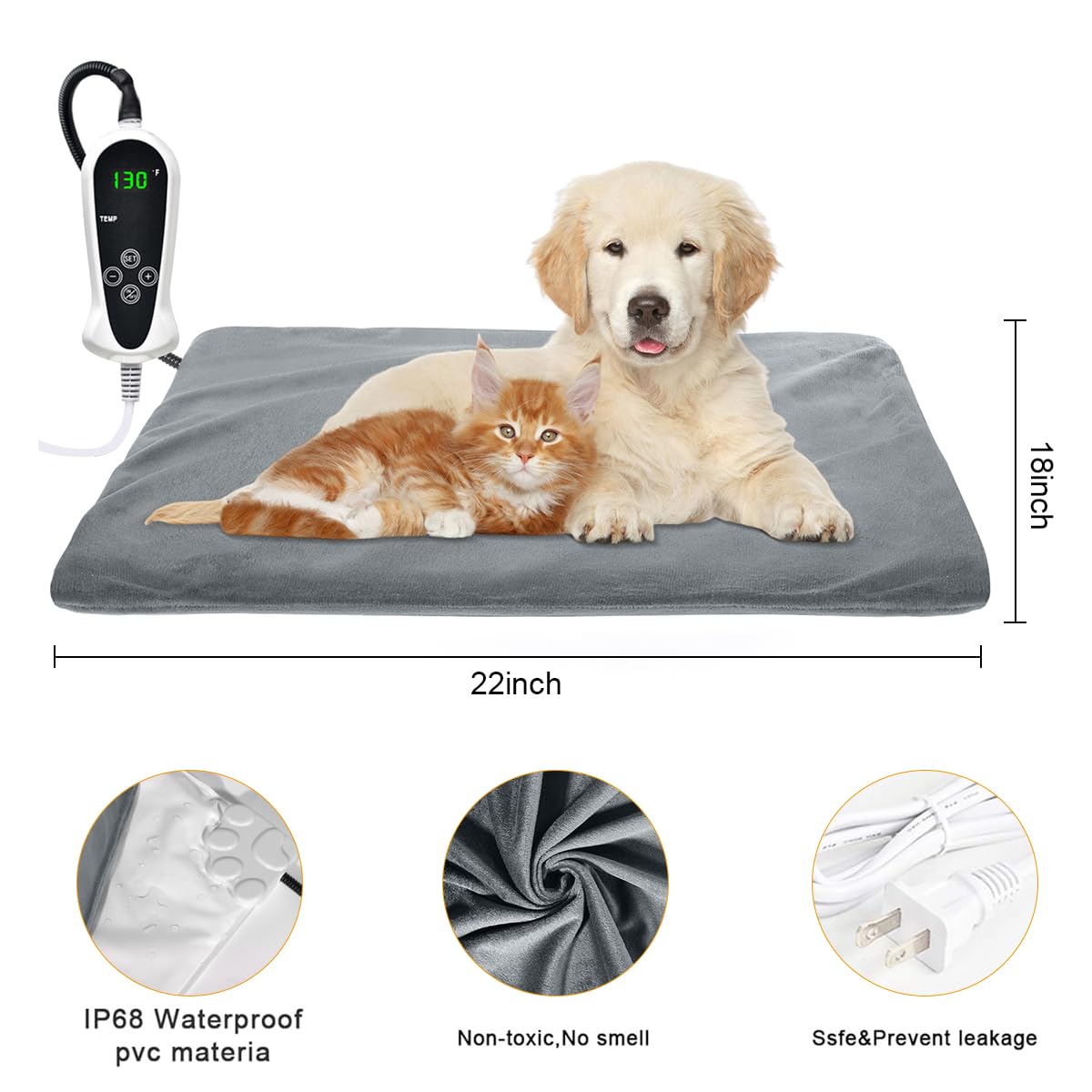 Riogoo Pet Heating Pad, Upgraded Electric Dog Cat Heating Pad Indoor Waterproof, Auto Power Off (Large: 22''X 18'', Grey)