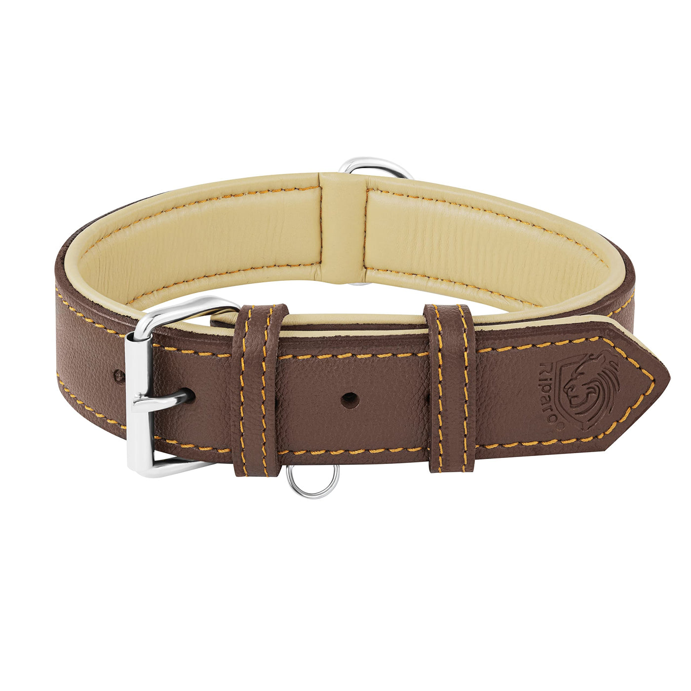 Riparo Genuine Leather Padded Dog Heavy Duty K-9 Adjustable Collar (Xl, Brown)
