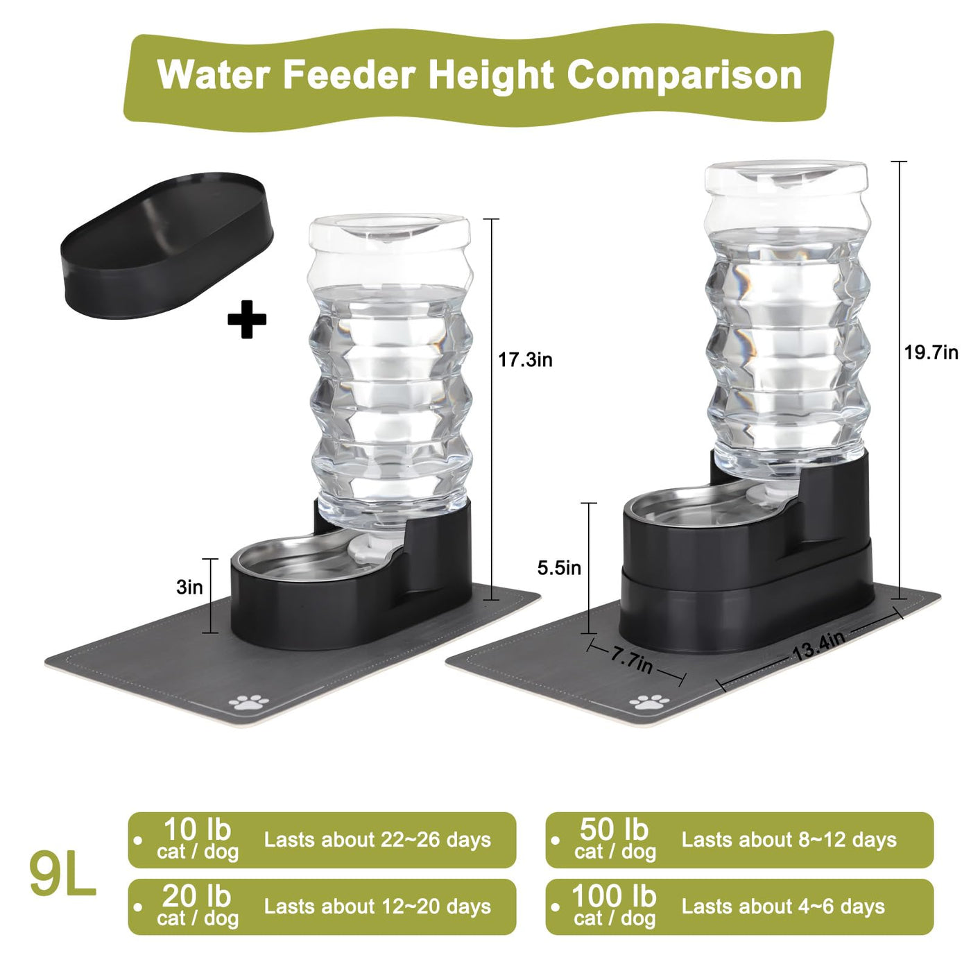 Rizzari 9L Raised Automatic Pet Waterer, Gravity Fed Stainless Steel Waterer, 100% Bpa Free, Large Capacity Feeder For Cats And