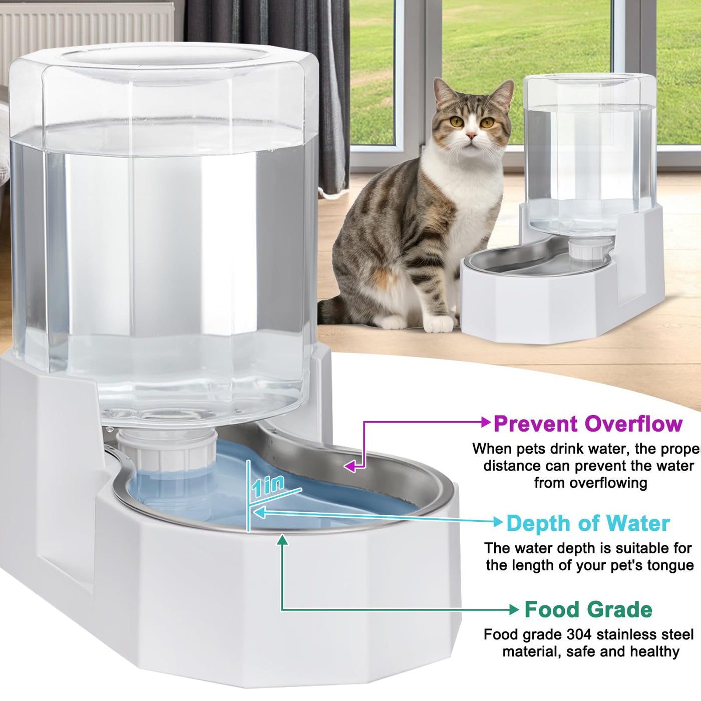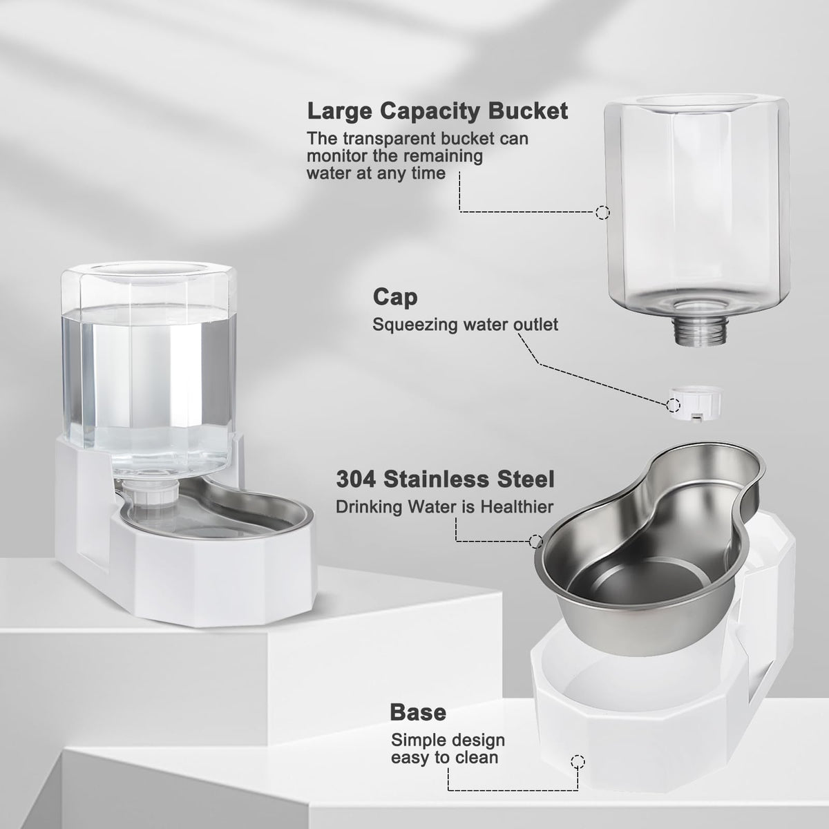 Rizzari Automatic 5L Gravity Stainless Steel Pet Waterer, Fortunate Angular Water Feeder With Edges, Safe And Large Capacity, Su