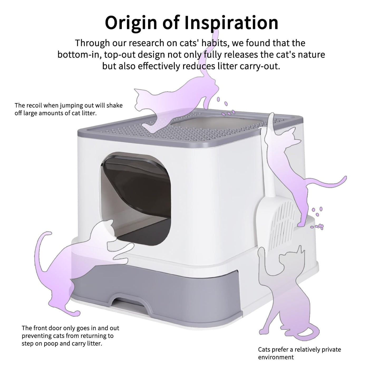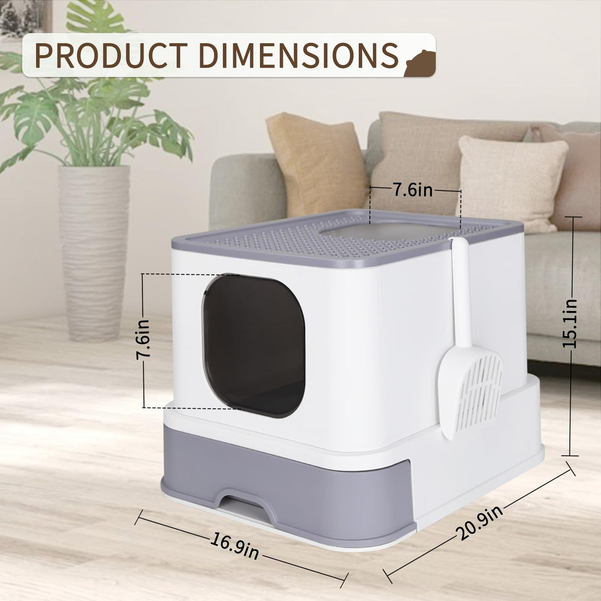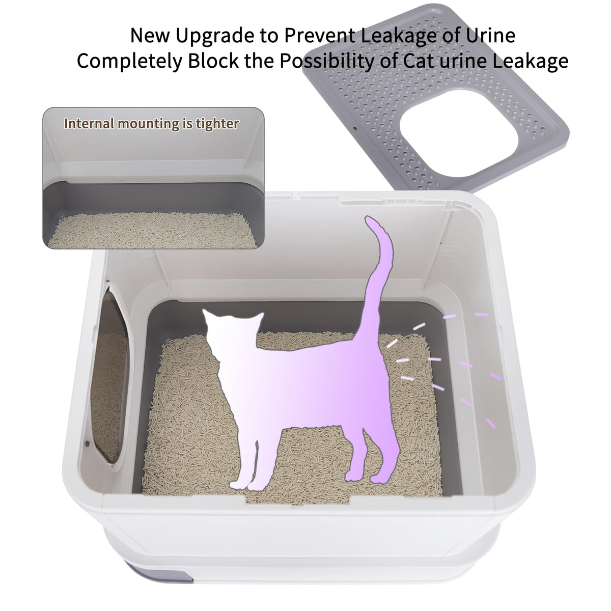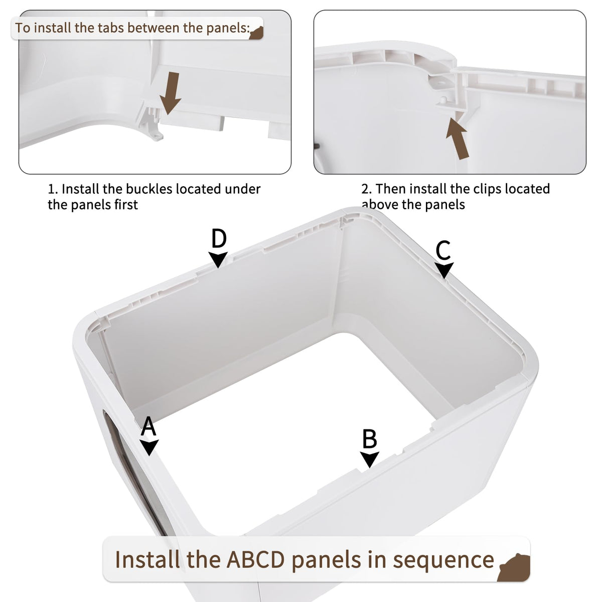 High Capacity: Our large capacity litter box can hold up to 20 pounds of cats, cats of different sizes can move and toilet freely in the spacious space. The top has a lid design, which can protect your cats privacy well, and also isolate the basin from odors and keep the air fresh. | Anti-Leakage: The upgraded folding litter box is more tightly connected and the inner walls are angled to better prevent leakage. The top lid is also designed with a number of small, dense holes that allow your cat to filter out litter from the soles of their feet when jumping out of the litter box, preventing litter from leaking onto the floor. | Two-Door Design: There are two types of front doors available for the litter box, one is only for cats to enter the litter box, cats can go out through the opening at the top, which can exercise their bouncing ability and is very much in line with the nature of cats. The other type of door is available for cats to enter and exit the litter box, cats come right out through this door, it is very convenient and you can choose to install it as needed. | Easy to Install&Clean: The bottom of the litter box has a drawer that you can just pull out to clean after your cat toilets in it. You can also pull the whole drawer out when cleaning without having to clean the entire litter box. The litter box is also very easy to install, just put each panel together in order and attach the drawer. | Quality Assurance: RIZZARI is a company that integrates research and development, production and sales. The whole cat litter box is made of high quality PP material, safe and odorless, sturdy and durable, can provide your pet with a comfortable and safe toilet space, very suitable for long-term use. If the cat litter box is damaged due to logistics problems, please let us know and we will help as soon as possible.