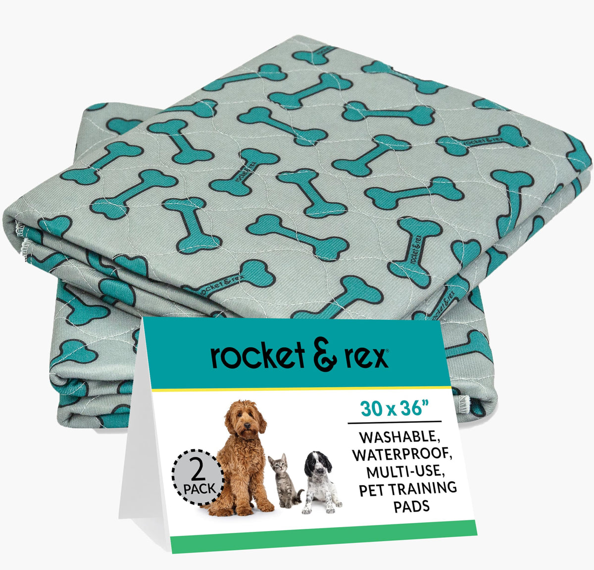 Rocket & Rex Premium Washable Pee Pads For Dogs | Potty Pads For Dog Training Pads | Absorbent Dog Crate Pad | Reusable & Waterp