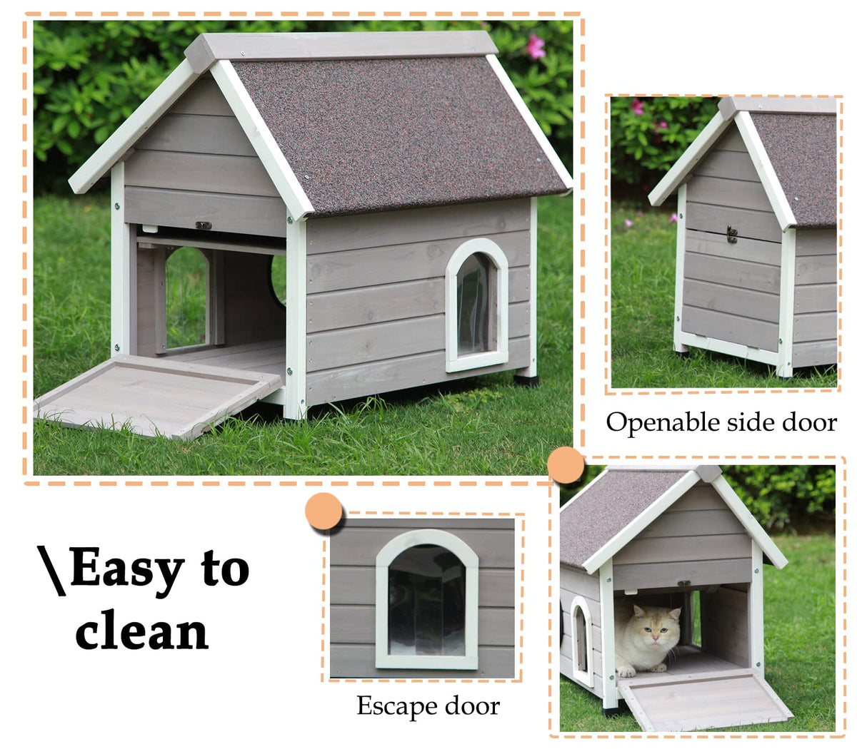 Rockever Outdoor Cat House, Feral Cat House Outdoor Weatherproof With Escape Door And Clear Windows For 2 Cats (Grey)