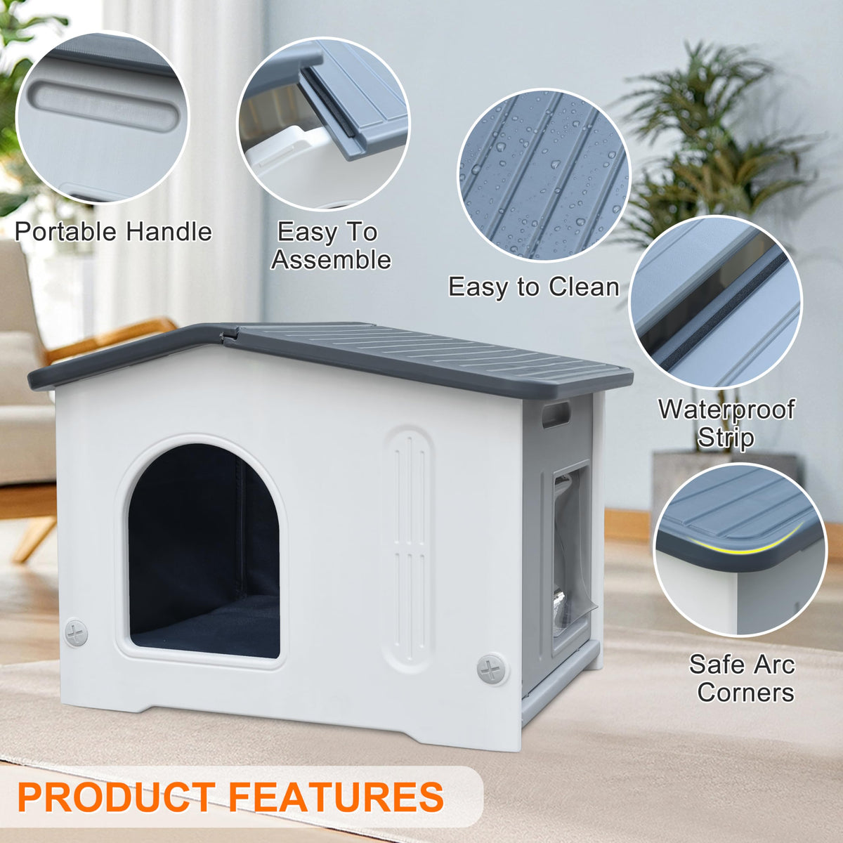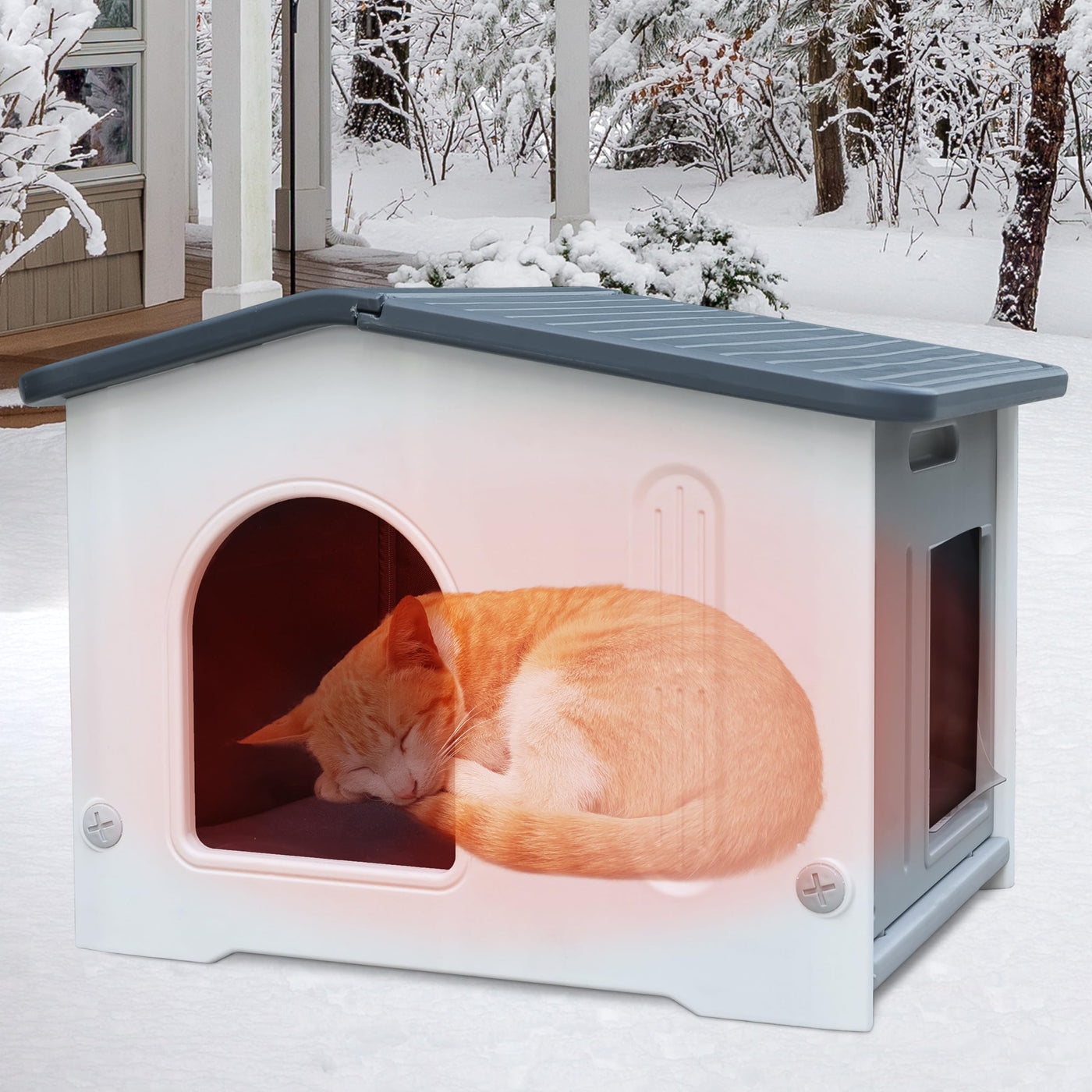Rockever Plastic Outdoor Indoor Cat House With Insulated Liner, 100% Insulated Outdoor Cat Houses For Winter Feral Cats, Waterpr