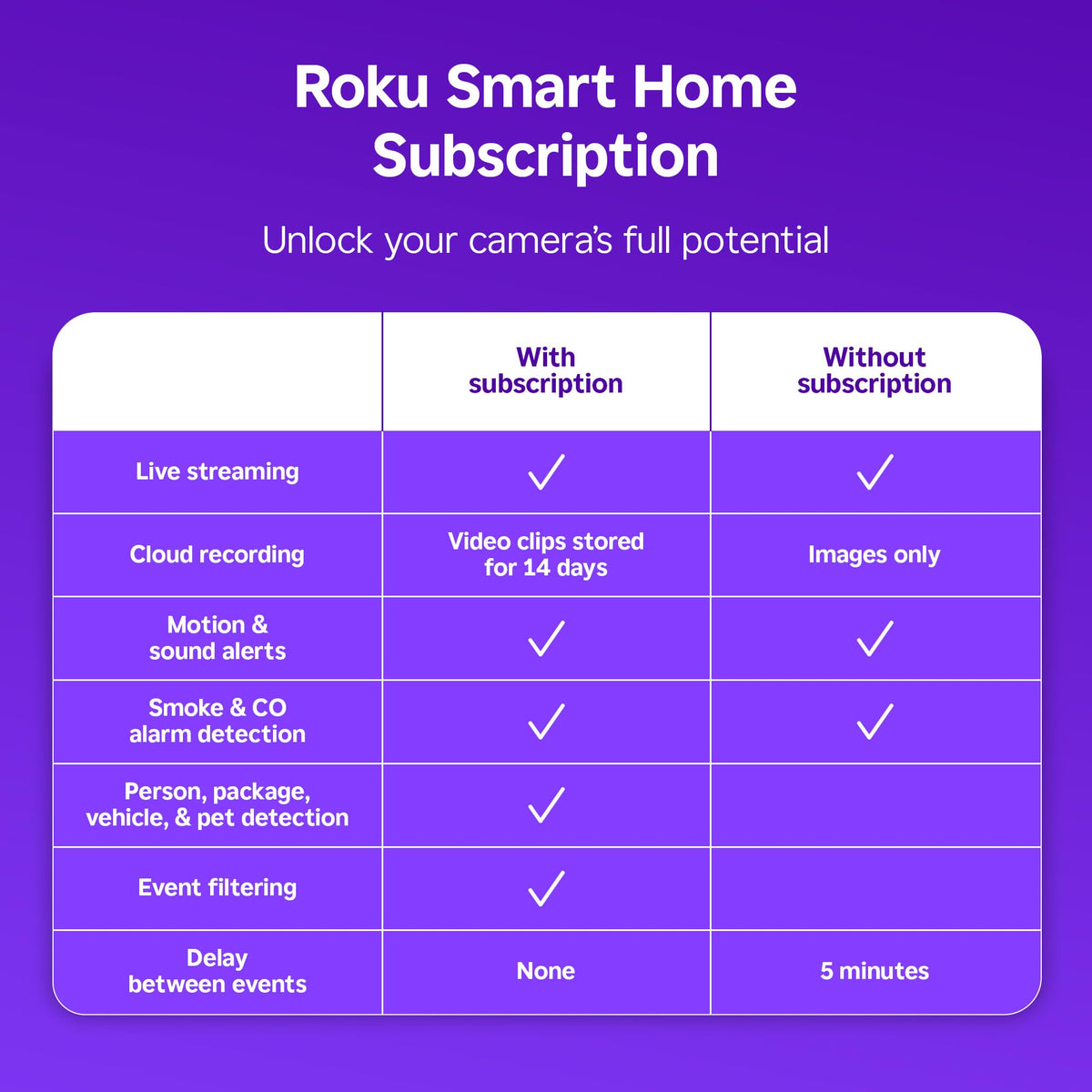 Roku Wired Indoor Camera from Americas #1 TV streaming company now brings your home to your screen. Place this home security camera in the kids' room, near the front door, or anywhere you want to watch closely, and catch all the action on HD video. Pull up a live feed from the couch on your Roku TV or player, or the Roku Smart Home mobile app. Automatic motion and sound detection alerts you of accidents about to happen, so you have enough time to say, Stop it! with clear two-way audio. A built-in siren deters unwanted visitors, while customized motion detection ensures it wont mistake a curtain for a threat. Plus, automatic software updates mean your Roku camera always offers the best performance and security.