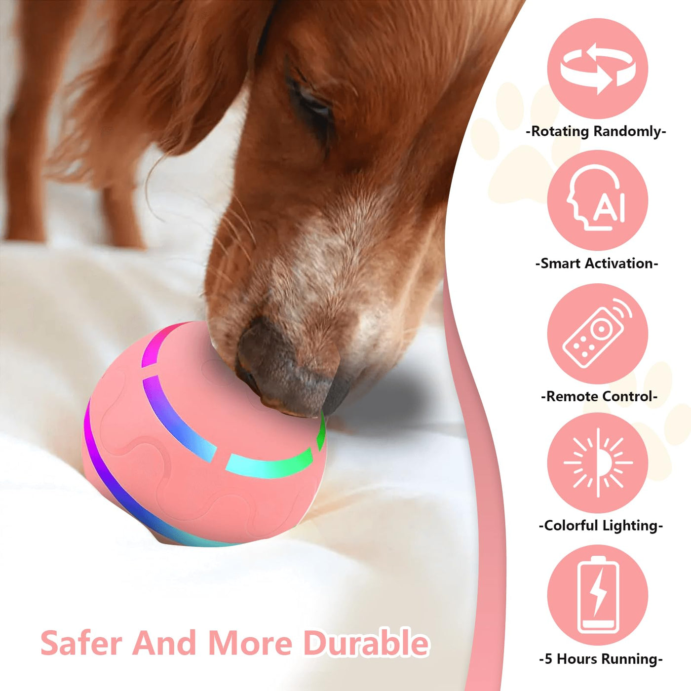 This interactive Rollie Pet ball is a fun way to keep your dog or cat active and engaged. Electric Dog Ball Toy Powered by a built-in motor, this colorful rubber ball will bounce around on its own via remote control, encouraging your pet to chase the bouncing ball . The random movement simulates playtime with an invisible playmate. Its small size makes it perfect for both dogs and cats of all sizes. The durable rubber material can withstand lots of bites and scratches without breaking. Auto shut-off prevents overheating so its safe for extended play sessions. Simply activate with the remote and watch as your pets instincts take over in joyful pursuit of this high-energy toy. Hours of entertainment are guaranteed with this automatic dog bouncing ball.