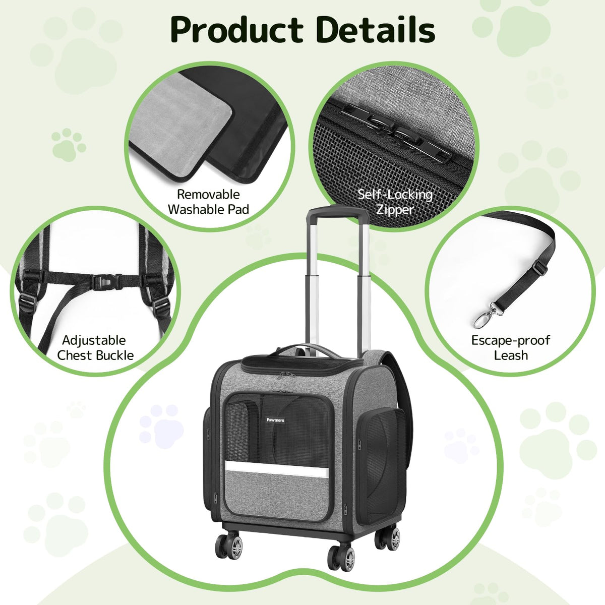 Introducing The Ultimate Solution For Pet Travel Convenience - The Pawtners Rolling Pet Carrier! This Innovative Pet Carrier With Wheels Is Perfect For Cat Owners, Dog Lovers, And Anyone Who Needs A Reliable And Comfortable Way To Transport Their Furry Friends. Our Rolling Pet Carrier Is Designed With Your Pet'S Comfort And Safety In Mind. The Spacious Interior Provides Plenty Of Room For Your Pet To Stretch Out, While The Mesh Windows Allow For Ample Ventilation And Visibility. The Durable Construction And Sturdy Wheels Ensure A Smooth And Stable Ride, Whether You'Re Walking Through The Airport Or Strolling Through The Park. Not Only Is Our Pet Carrier With Wheels Designed For Your Pet'S Comfort, But It'S Also Designed For Your Convenience. The Retractable Handle And Smooth-Rolling Wheels Make It Easy To Maneuver Through Crowded Spaces, While The Multiple Pockets And Compartments Provide Ample Storage For All Your Pet'S Essentials. Plus, The Airline-Approved Design Means You Can Bring Your Pet Along On Your Next Flight With Ease. Whether You Have A Small Cat Or A Large Dog, Our Rolling Pet Carrier Is The Perfect Choice. The Adjustable Straps And Removable Fleece Pad Allow You To Customize The Carrier To Your Pet'S Size And Comfort, While The Sturdy Frame And Reinforced Bottom Provide Added Support For Larger Pets. And With The Sleek And Stylish Design, You'Ll Be Traveling In Style With Your Pet By Your Side. Don'T Settle For A Basic Pet Carrier - Upgrade To The Pawtners Rolling Pet Carrier And Make Traveling With Your Pet A Breeze. With Its Durable Construction, Comfortable Design, And Convenient Features, This Pet Carrier With Wheels Is The Perfect Choice For Pet Owners On The Go. So Why Wait? Order Yours Today And Start Rolling In Style With Your Furry Friend!
