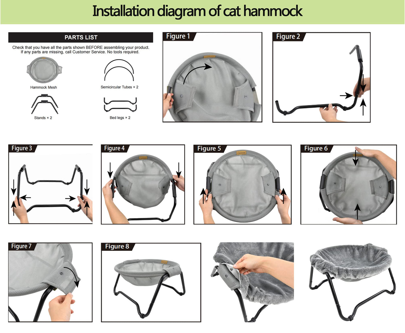 Roodo Cat Hammock Bed Free-Standing Removable Washable Mesh Roundness Couch Excellent Breathability And Easy Assembly Comfortabl