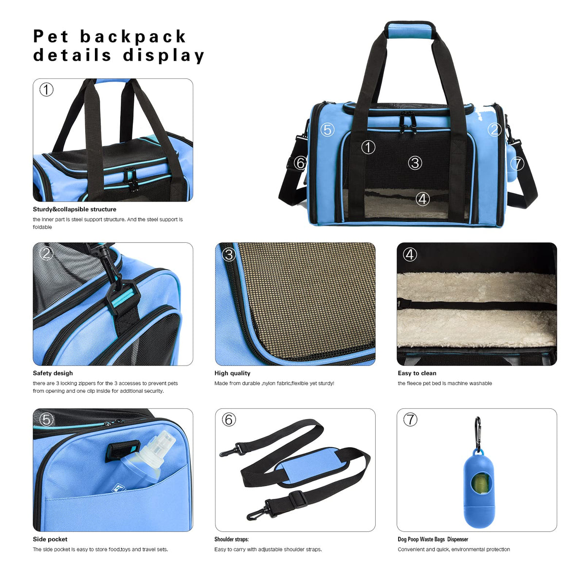 Rosebb Cat Carrier Dog Carrier Pet Carrier Cat Bags For Small Medium Cats Dogs Puppies Of 15 Lbs,Of Airline Approved Small Dog Bag Soft Sided,Collapsible Travel Puppy Carrier (Medium, Blue)